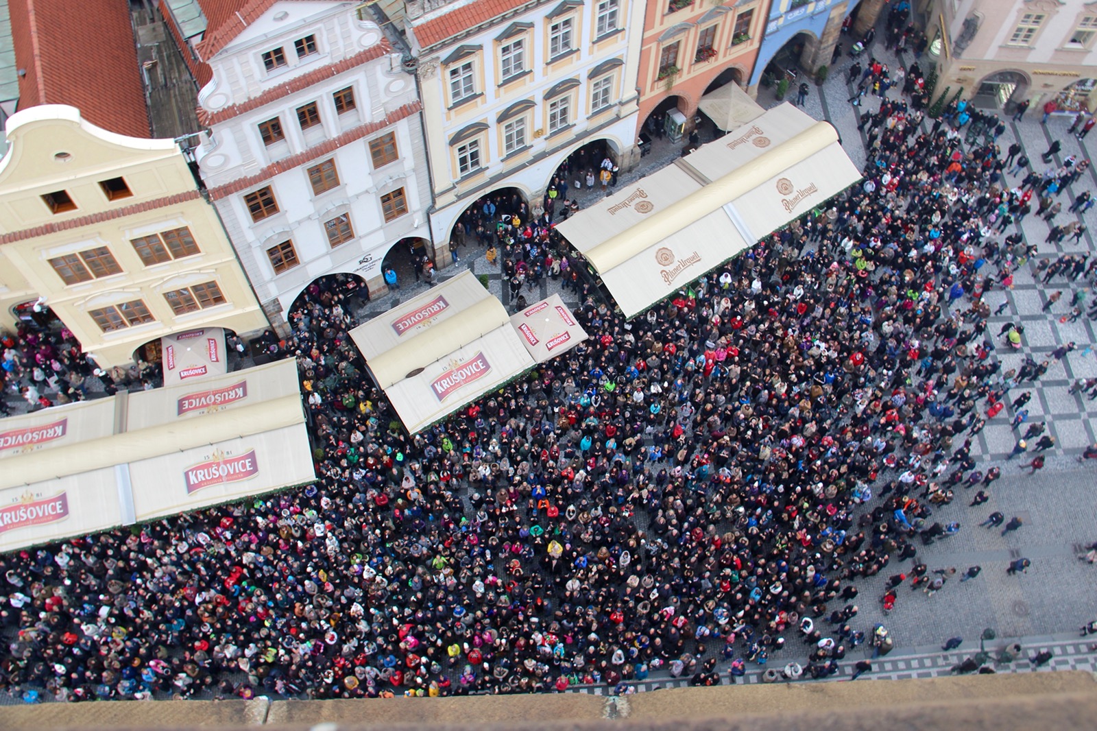 It was just turning 12pm and the crowds in front of the astrological clock was ridiculous. It looked like you wouldn’t even be able to move down there! What was quite worrying, was that the tower had no barrier. There was a small, waist-high barrier, but that was it. Anyone could have thrown something off the top, or even jumped off! Quite unusual!