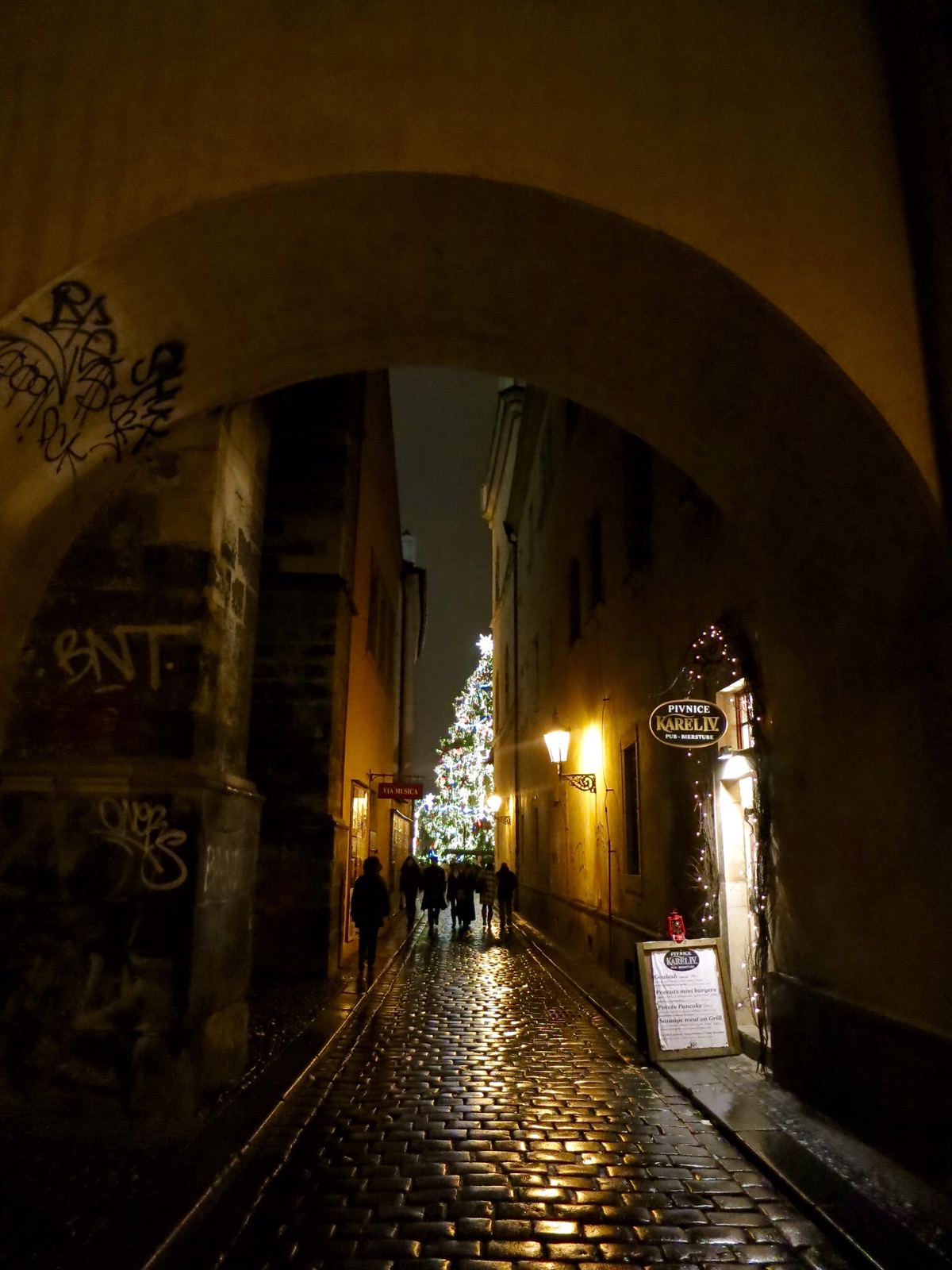 All lit up, it was so pretty – the castle looking over the river, the lights on the bridges with dancing reflections in the water. And crowds of people. We are staying on Wenceslas Square and have part of the Christmas market right on our doorstep! After dropping our bags, we headed back outside, but it was now 10pm and the stalls were all closing up for the night. So time for bed!