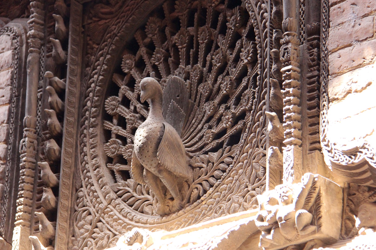 We came into the first square – Tachupal Square. This was cute. Surrounded by old wooden shop houses, fruit sellers dotted around and a small temple in the middle. Goats were running around with small children, while old men sat around the edges watching the world pass by. There were lots of signs around for the peacock window. Just down one of the small side streets, a small alleyway packed full of art shops. And I had no idea what I was looking for. Turns out literally just a carved window with a peacock. It’s from the 15th century and supposedly the finest carved window in the valley.