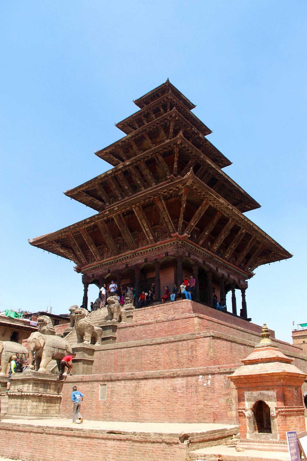 After wandering a few more streets we came to Taumadhi Tole. The towering Nyatapola Temple at one end is 30m high and has several tiered roofs. It really didn’t seem that high, but it’s the tallest in Nepal!