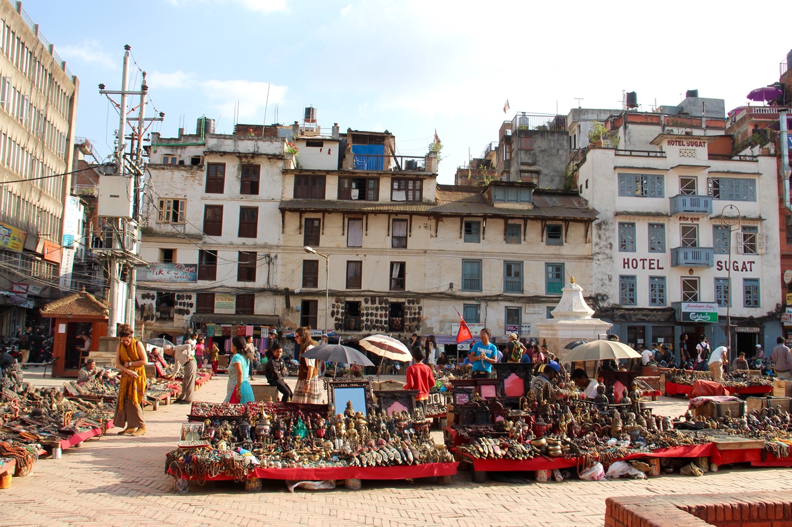 To one of side us was a large square, totally full of metal stalls. Everything in metal – jewellery, statues, bowls – it just never seemed to end!! And on the other side, an ‘English’ style building. Apparently after Nepali people visited England they decided they liked the building style, so have built a few buildings in a different style. They are square concrete buildings, painted white and blue shutters. Don’t remember the last english building that I saw looking like that though….