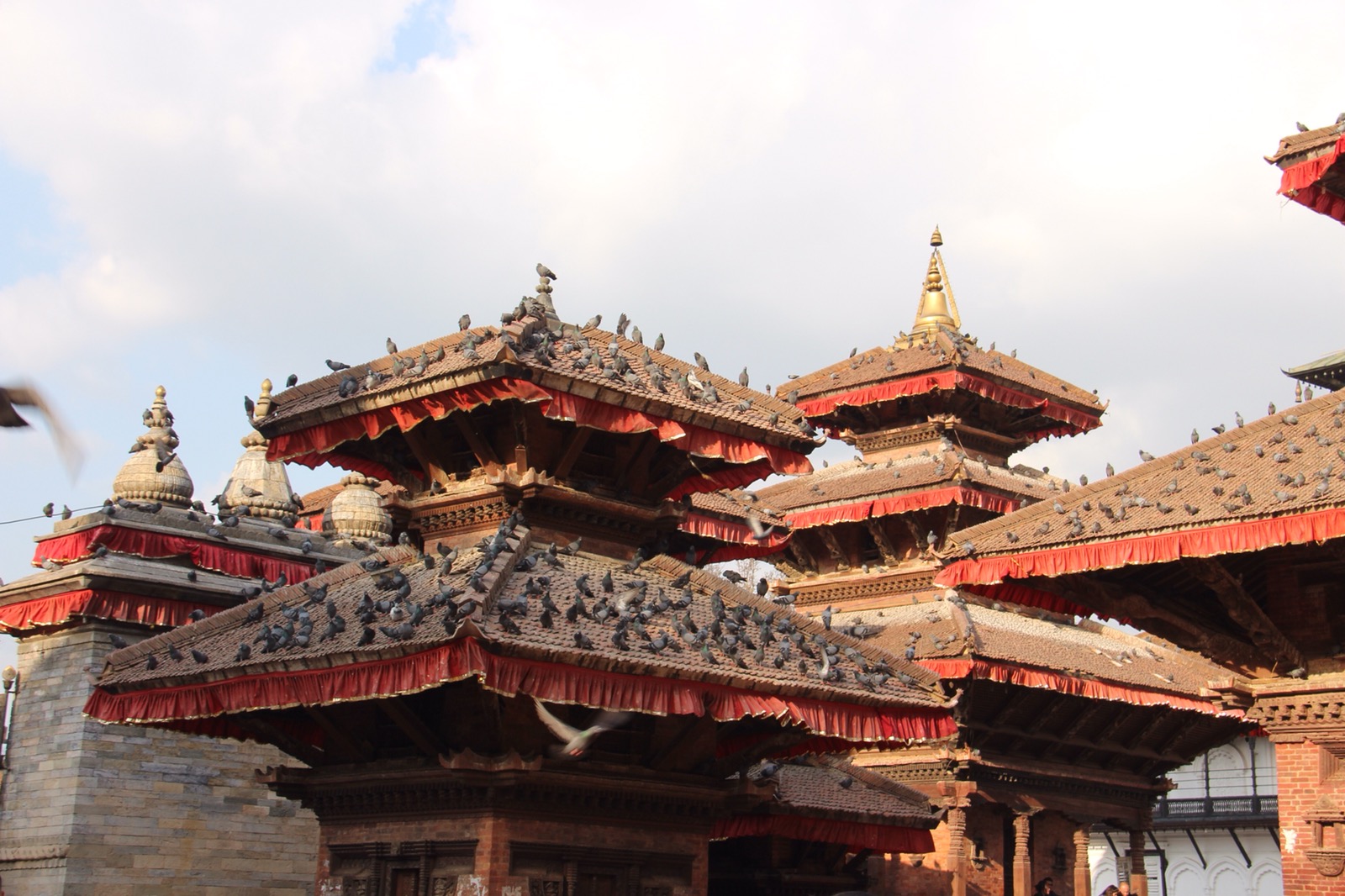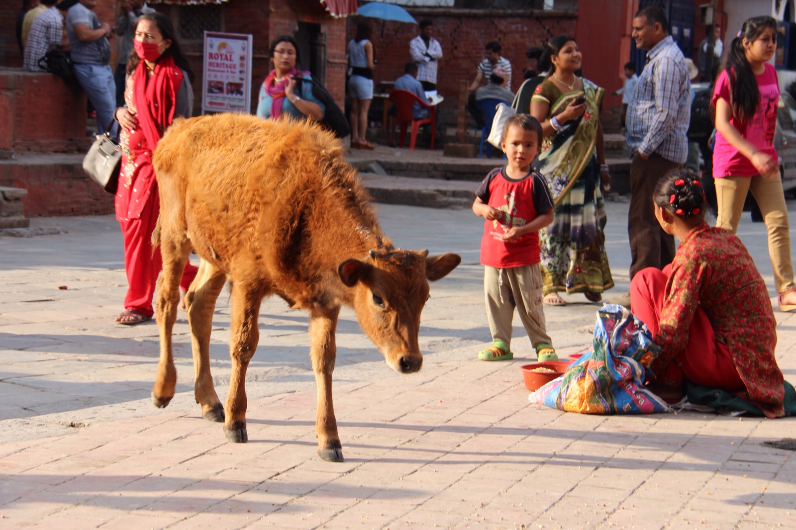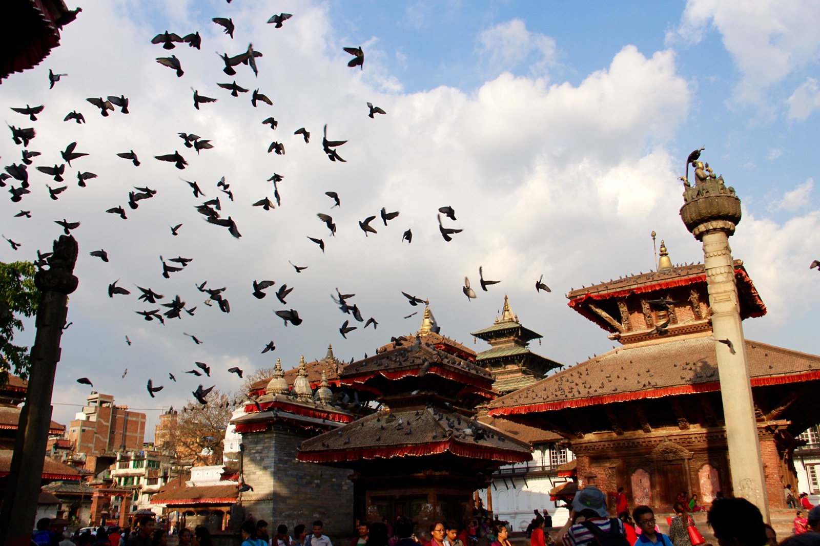 We were now into the main square area and it was so packed you could barely move. People everywhere. It wasn’t even very big. A man on your left trying to sell flutes. On your right selling tea. In front begging. And pulling your back, a woman with necklaces. A total joke. The buildings were again red and black pagodas and small temples. It was cool. A small cow wandering around, motorbikes weaving between the people (yes the main square and they don’t even close it off for traffic). Shops selling paintings. Women selling pigeon feed (they feed them here….). People, with small audiences reading from books. And the old palace turned to museum.