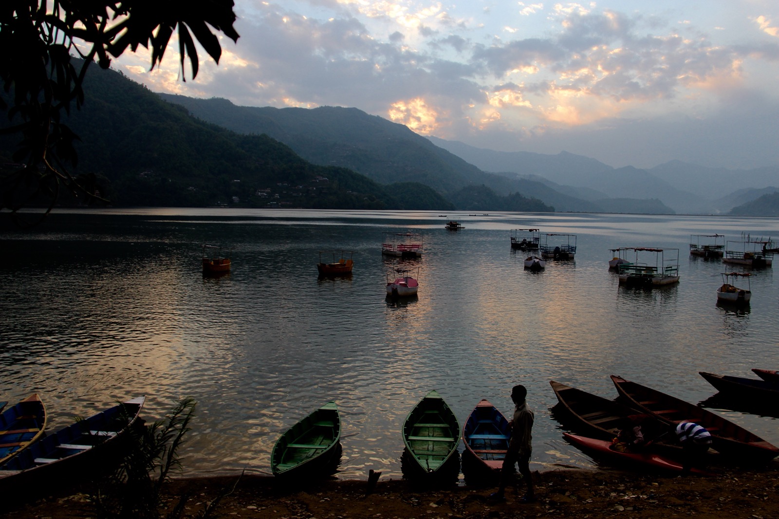 Phewa lake is the second largest lake in Nepal. It was so pretty. Wooden boats scattered along the shoreline that you can hire to paddle around. The mountains cascade down either side of the lake, misty in the distance and the sun was setting, casting shadows across the water.