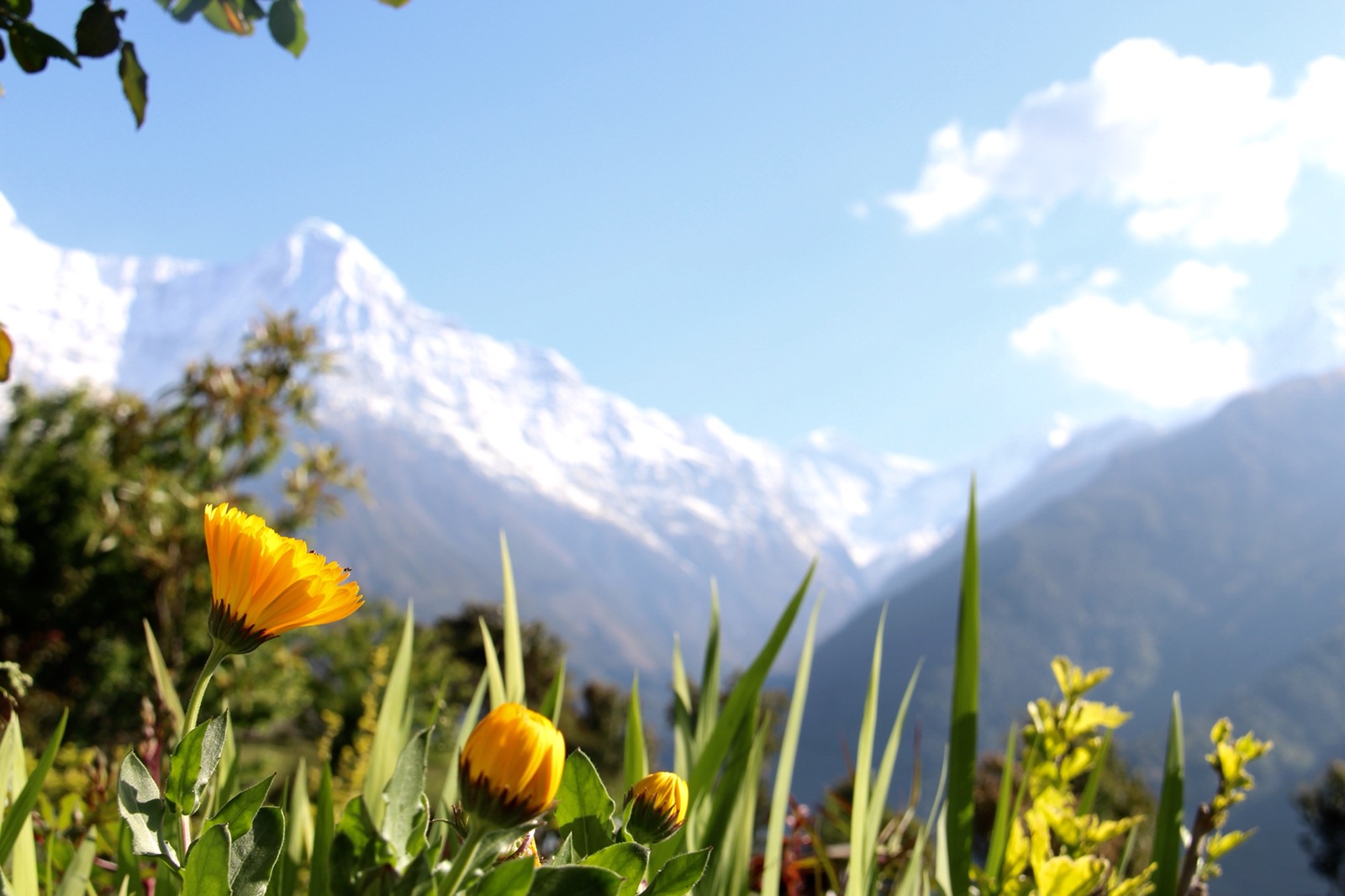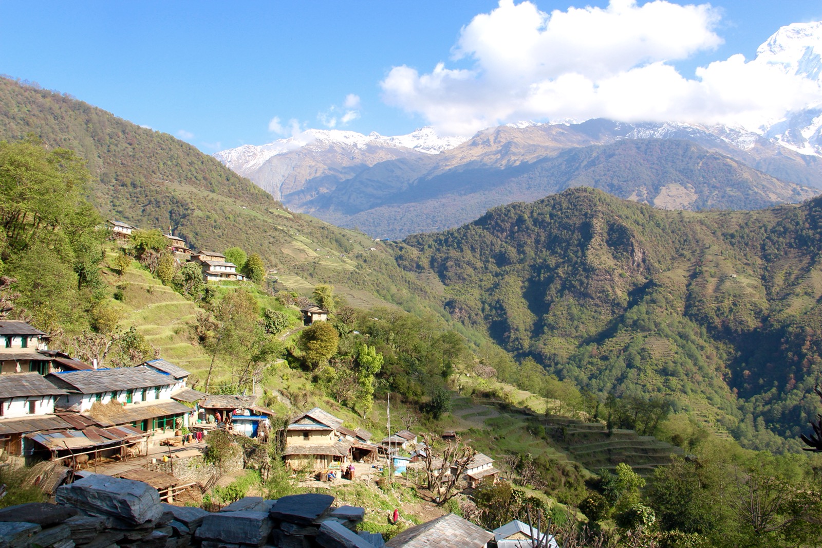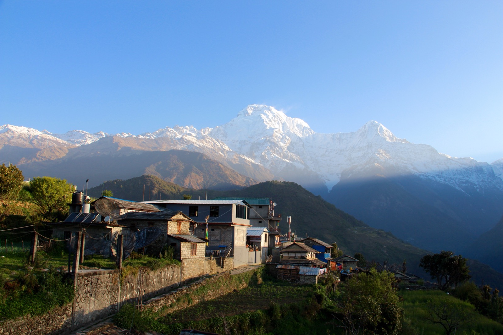 I eventually made it up to the small, colourful village of Jhinu Danda. So many flowers and prayer flags draped across all the buildings. We arrived at just after 12pm.
