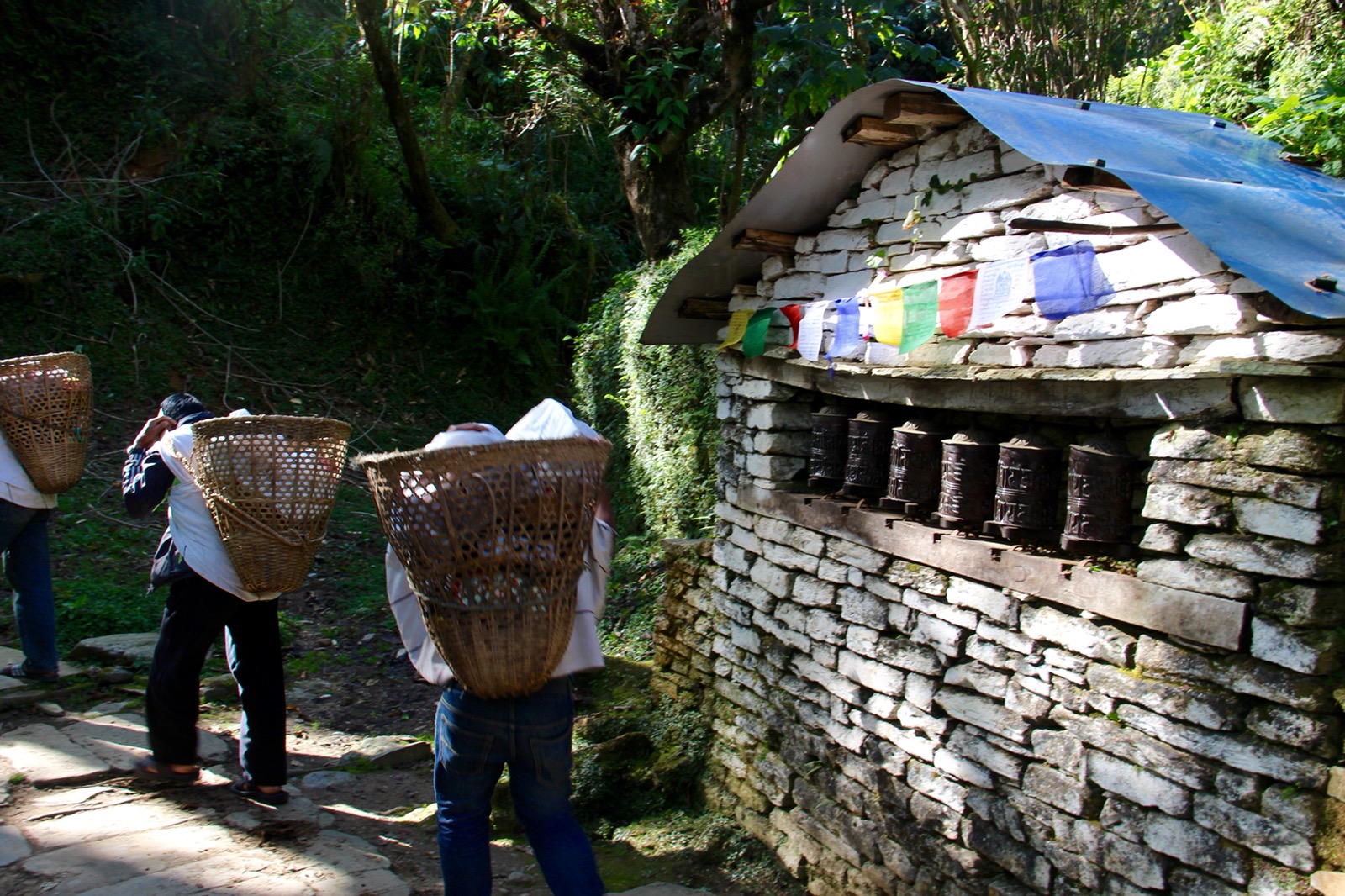 That seems like such a long time. We finally set off through the village, still with some amazing mountain views. There was some small ups and downs, past local houses and then to some small prayer wheels. I heard shouting behind me ‘wrong way, wrong way’ – the guide from the back of the group. How was I going the wrong way, I was just following the others.