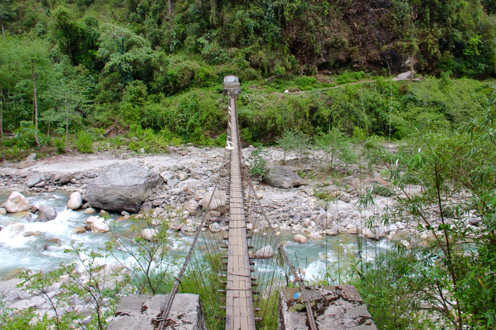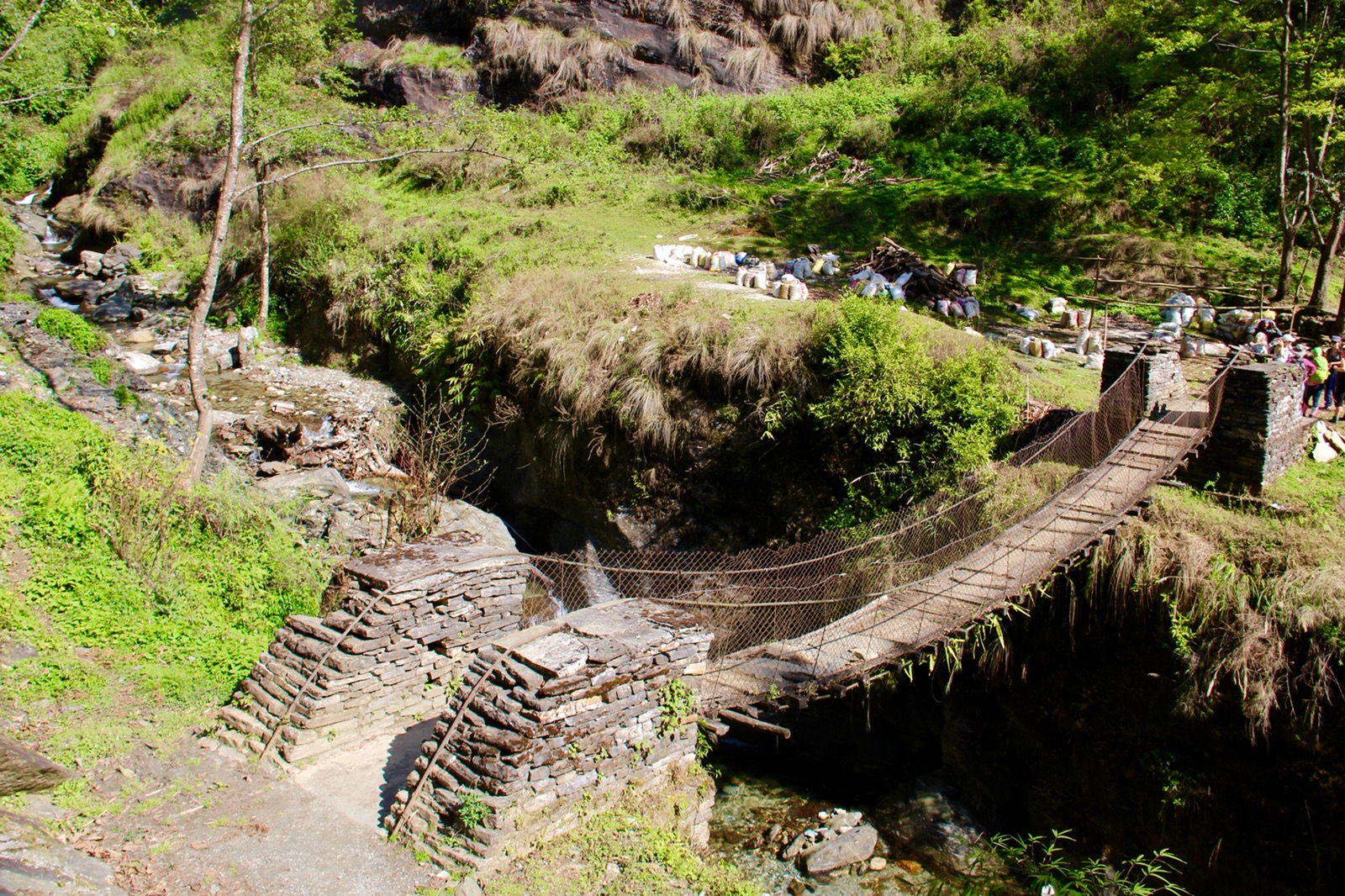 The three of us slow people stuck to the back and let the rest of the group race ahead. After over an hour of backtracking, we turned off onto a different path and began to descend back towards the river. This time the bridge to cross the river was a long and wobbly, wire suspension bridge. It was scary!! The walk from here was so pretty.
