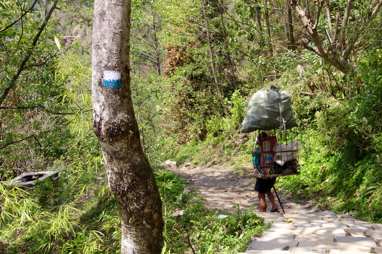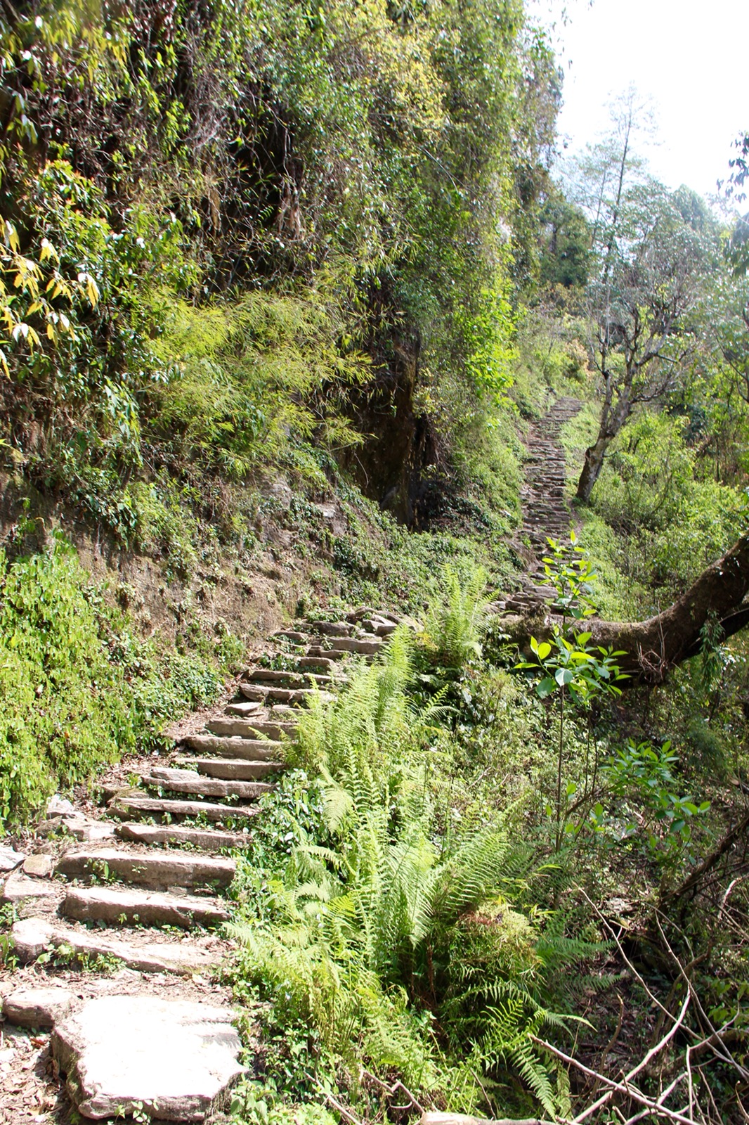 From now, it was just down, down, down. Going down is hard too!! It doesn’t sound like it should be, but the steps are so steep and large, it’s almost a jump each time. The snowy mountains slowly disappearing behind the nearer green mountains, as we descended lower and lower.