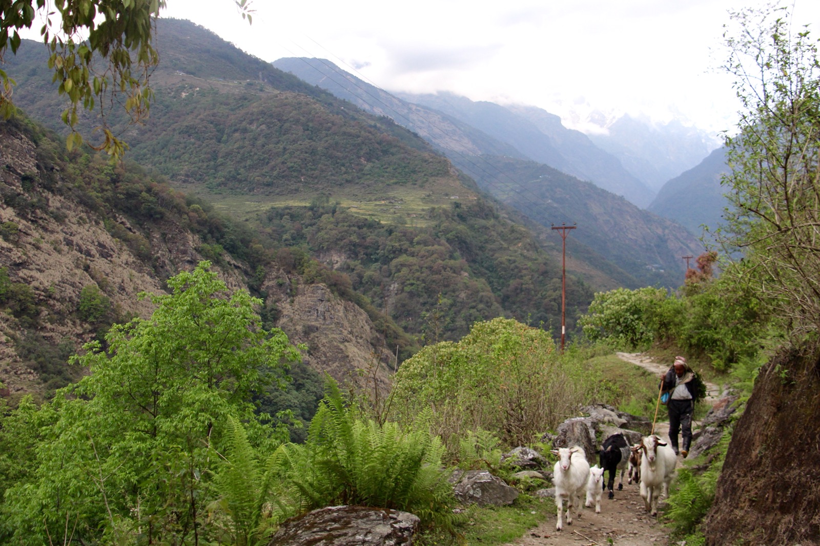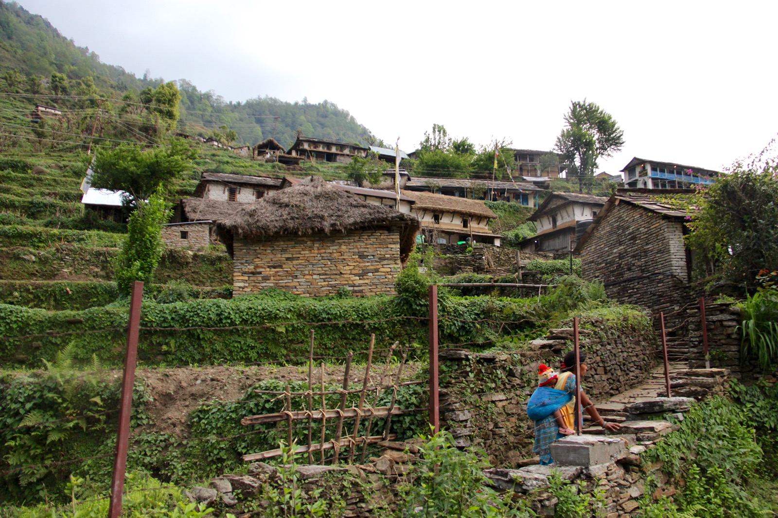 And it was a relatively flat walk along this section, but we still took it slowly taking so many photos and stopping to speak with a really old (82 year old!) goat man. He even let me hold one of his baby goats! One last uphill section and we finally rolled into Landrung, at 6.30pm, our village for the evening.