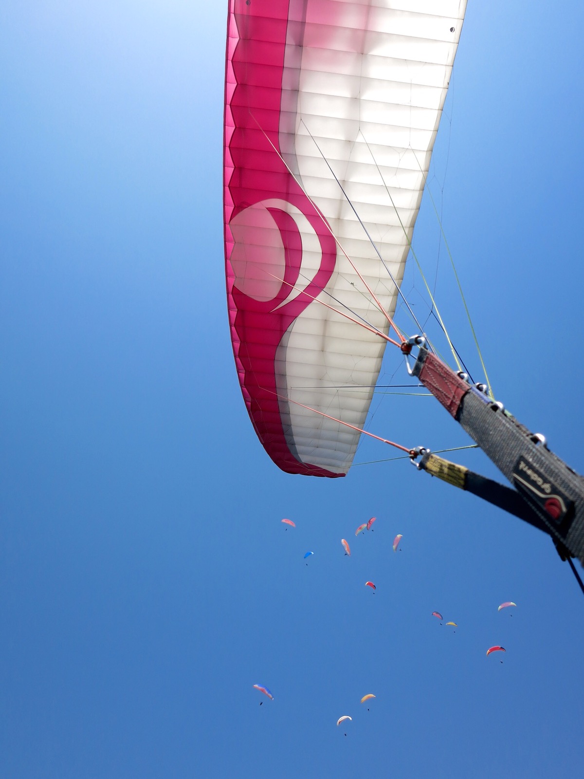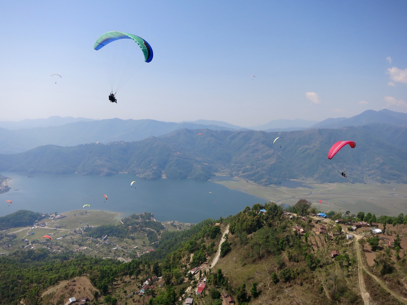 From here the views are great, all across the valley towards Pokhara. And from here, paragliding. The hillside was so busy, there were at least 30 gliders in the sky. I have no idea how they didn’t crash into each other!! The guy said they all turn right and they know each other, so it’s all fine. Hmm. Apparently it was really good air.