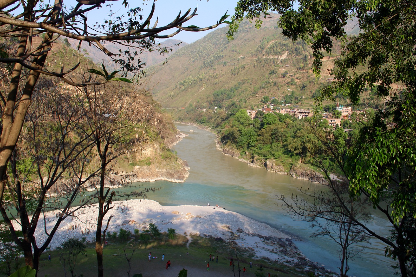 After picking up the rest of our luggage from the hotel, we head off at 2pm on the bus to head to the next destination – Chitwan. The transport strike is over and the roads were busy. Trucks and buses, cars and motorbikes. Everywhere. On all the narrow roads, so the journey was slower this time. All the shops were open again too. We stopped after 3 hours for a tea break at a cute cafe, with great views out across a large river confluence. Locals were playing football and doing their washing in the river.