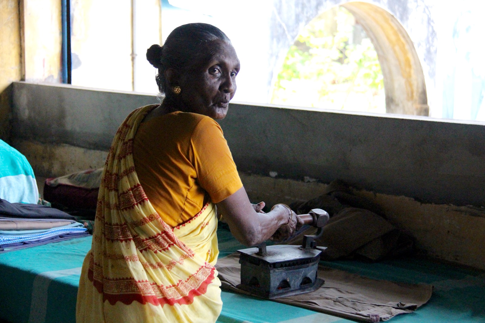 And there was an ironing area – old women with old irons which are not electric, instead they have a small fire inside them, burning coconut husk!