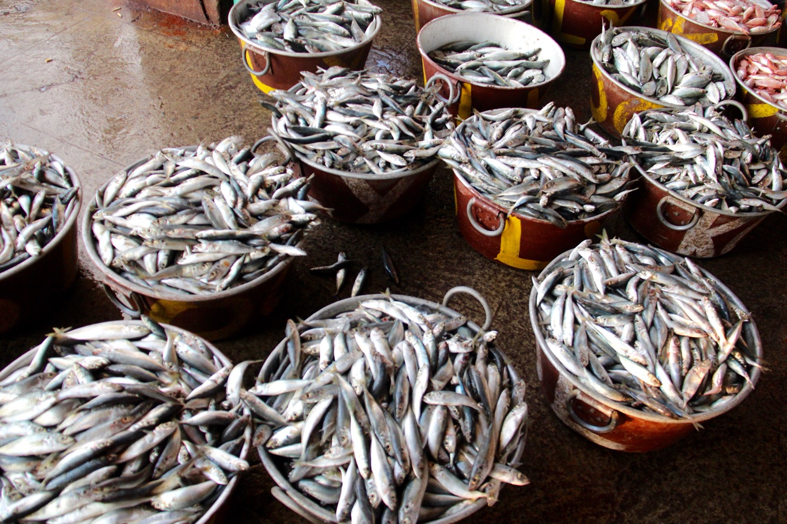 Up even earlier today – 5.45am to visit the action of the fish market! It was a 15 minute drive away. And even at 6am the roads were teeming with people, tuk tuks and goats. It seemed that many were going to the fish market. Women lined the streets with large tubs on their heads, either full of fish, or going to be full of fish, depending which direction they were headed. The dockyard was crowded. People and fish moving in all directions.