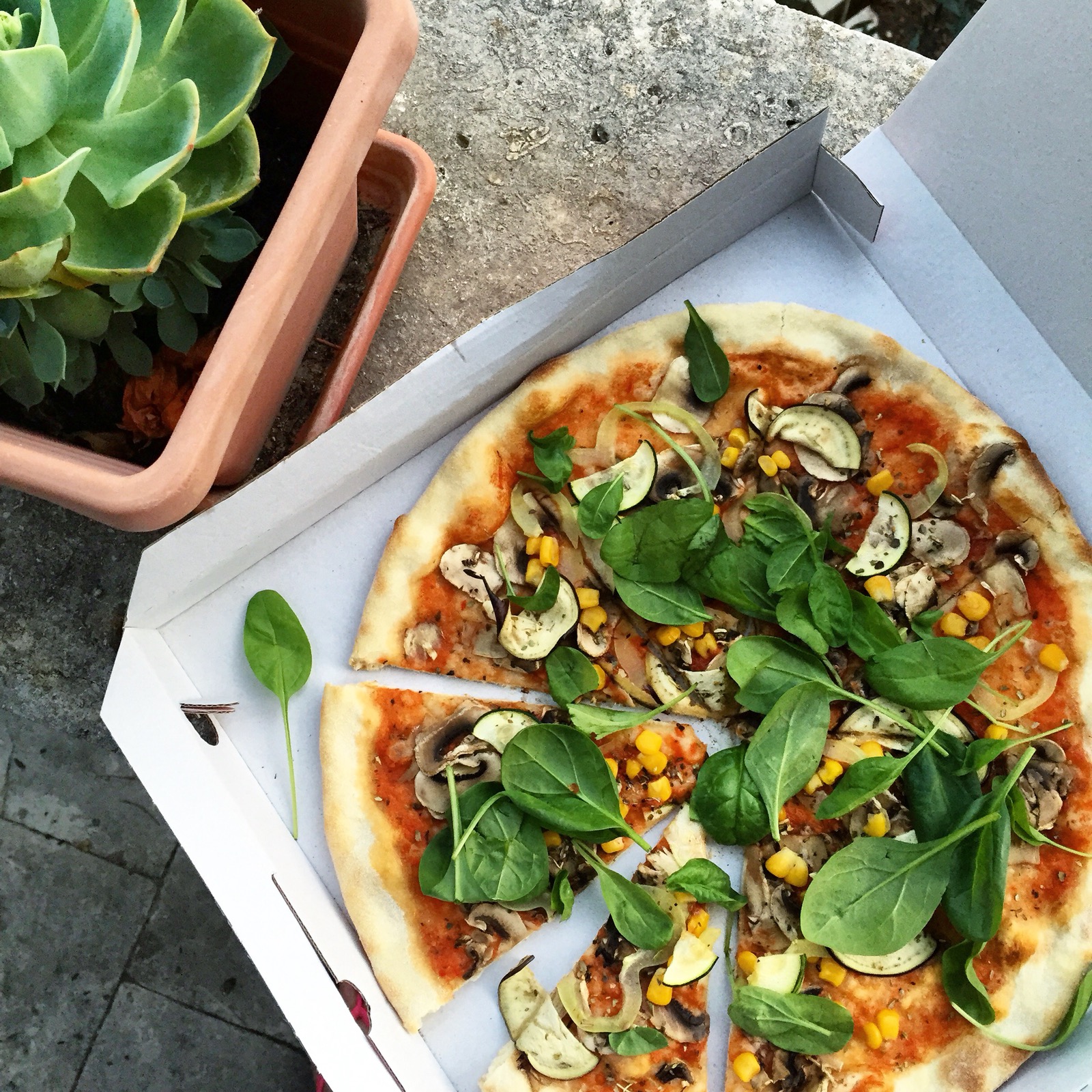Around 3pm, we started making our way back to Dubrovnik. This time we drove the long way around, all around the bay of Kotor. It was pretty. But then I fell asleep… (What is wrong with me?!) The vegan restaurant was closed tonight. So time for a different plan. The town is full of pizza restaurants, I found one that would do a takeaway, no cheese, no onion pizza! Which I enjoyed back on the terrace of the hotel. It was so delicious! Pizza with no cheese is so much better!!
