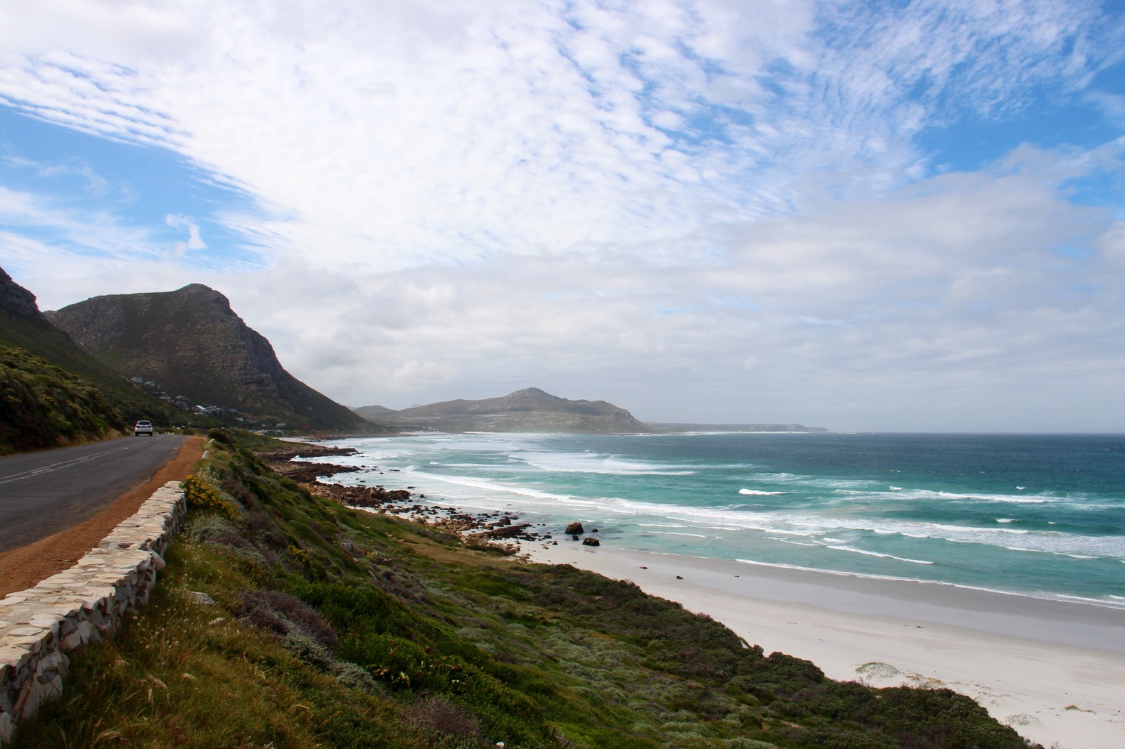 We drove along Chapman’s Peak drive, a road which runs along the coastline heading South. This drive takes you along the edge of a cliff, with views down across several bays and beaches. It is supposed to be one of the most beautiful drives.