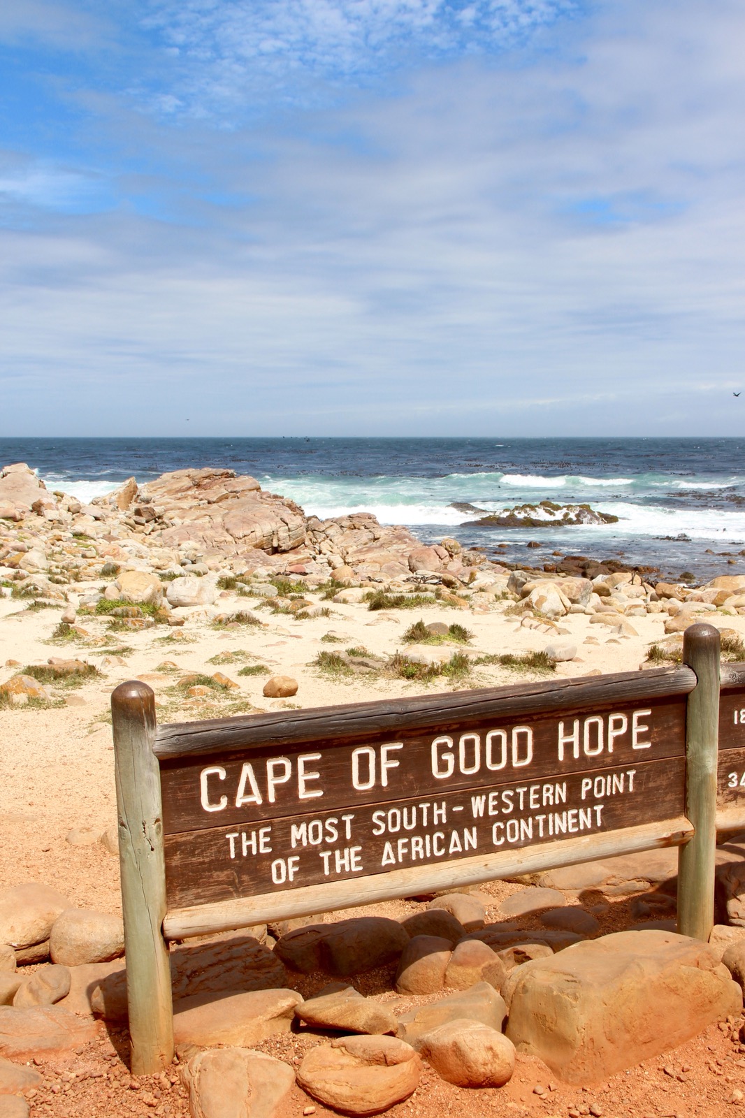 The views were really pretty. Could see all the way back to the lighthouses on Cape Point, as well as the bending coastline on both sides. We scrambled back down the rocks, down to the other side and ended up on a rocky beach, with the Cape of Good Hope sign. Everyone wants their photo taken with this sign. It was a bit of a free-for-all, despite some people trying to make a queue.