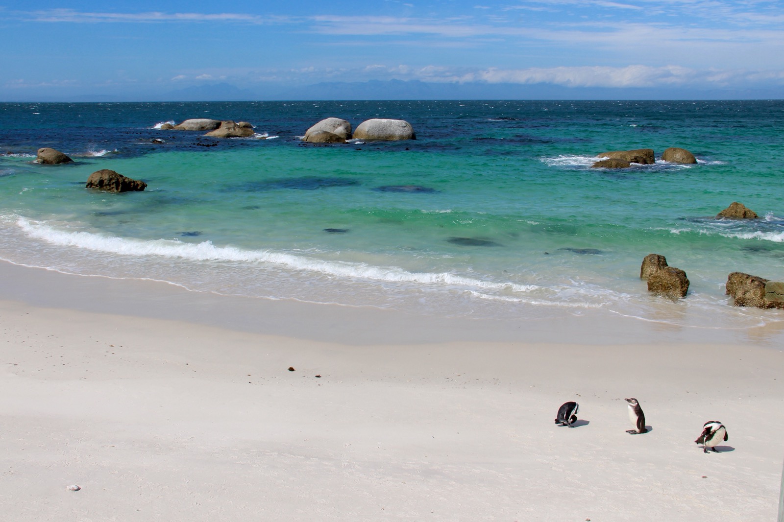 Next stop, Boulders beach. This string of beaches is famous for its penguins. They shelter here and basically live in people’s houses. I was really looking forward to visiting the penguins! We walked along a board walk, through a forested area. Some of the penguins were resting under the trees, a few babies too. Then at the end of the boardwalk, a viewing platform on the beach. The sea was perfectly blue and the sand was totally white, and covered in penguins! They were cute!