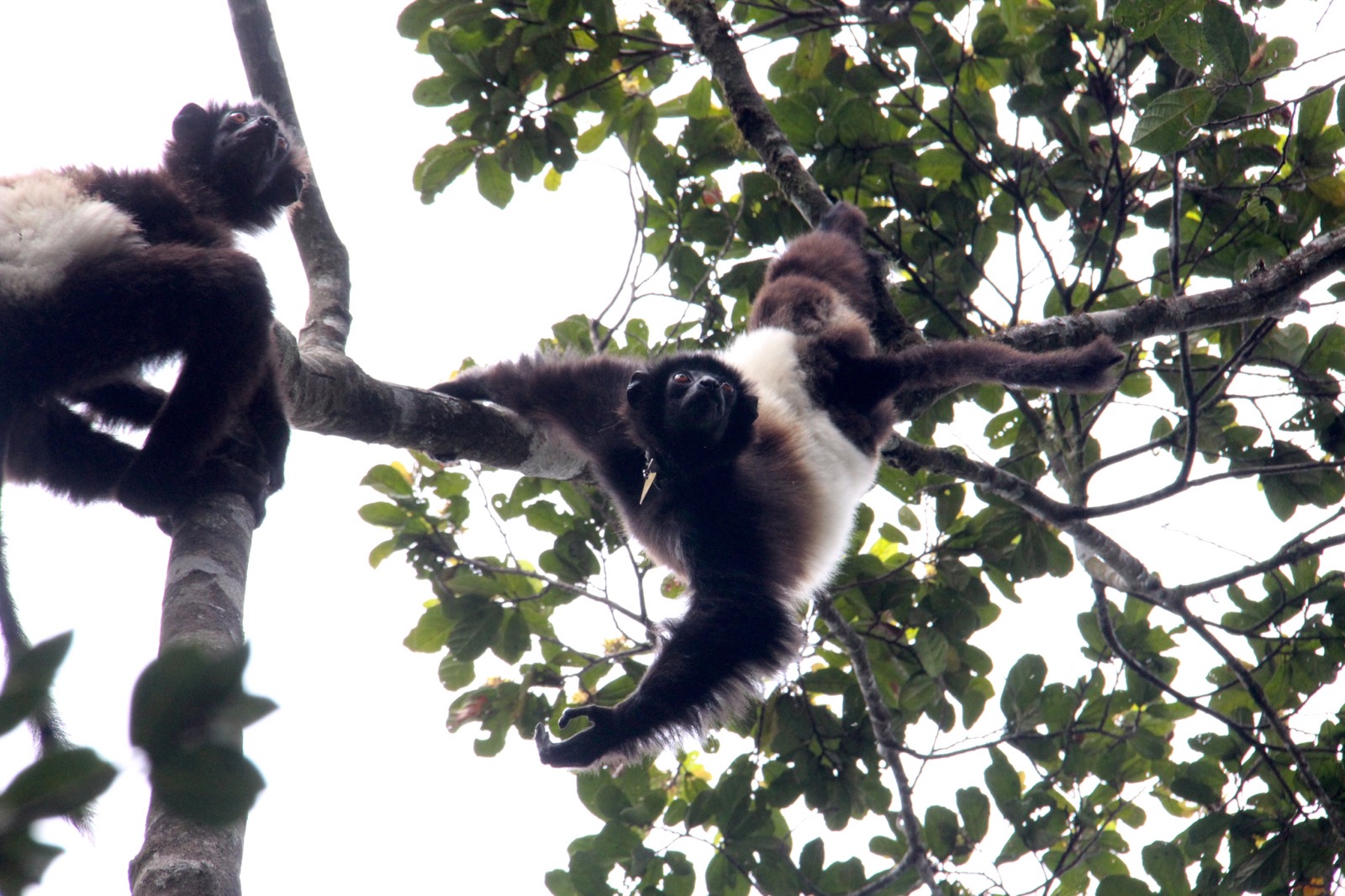We also saw some Black and white sifaka. These are the second largest type of lemur (after the indri). There were two of them, hanging around together in a tree, leaping around and hanging upside down.