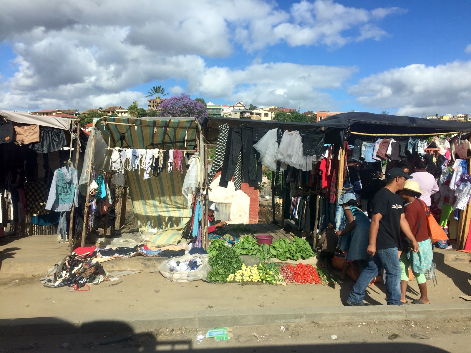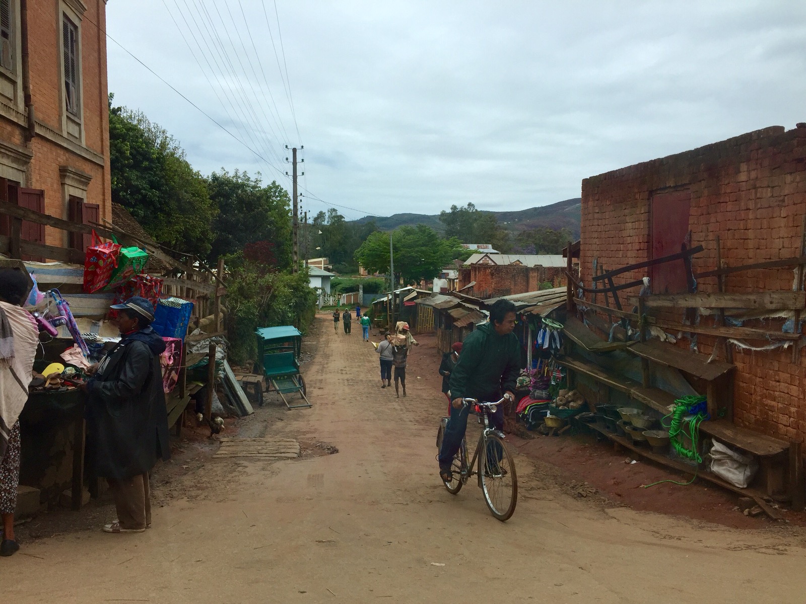 I woke up a couple of hours later as we were driving though the town of Fianarantsoa. This town was large – so many shops and people. The shops were all together, first a load of hairdressers, then car-fixing, a massive fruit and vegetable area, lots of rice shops, then a large chaotic looking bus station, more fruit and vegetable stalls, then random plastic shops. Of course everything still looked very old and rural. And so many people about!