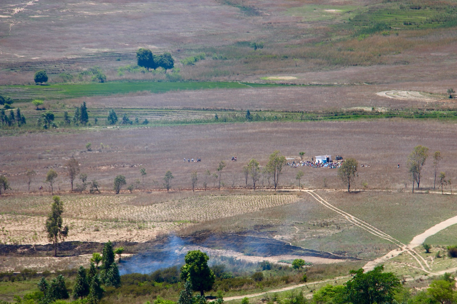 It was a long walk along the top of the rock cliff. Literally along the edge! Nothing to stop you falling right off! But the views were so cool – right out across the flat grasslands, for miles and miles. We could see the village we were staying in, plus the odd house dotted around. We could hear the occasional gun shot. An exhumation was happening. There were crowds of people around one of the tombs. The process of an exhumation varies between each different tribe. Here they take the bones out of the tomb, open up the coffin and clean the long bones with zebu oil. The bones are then transferred to a permanent tomb. Many of these permanent tombs are in the face of the rock. We could see several, high up on the cliff side, the entrance filled with smaller bits of rock.