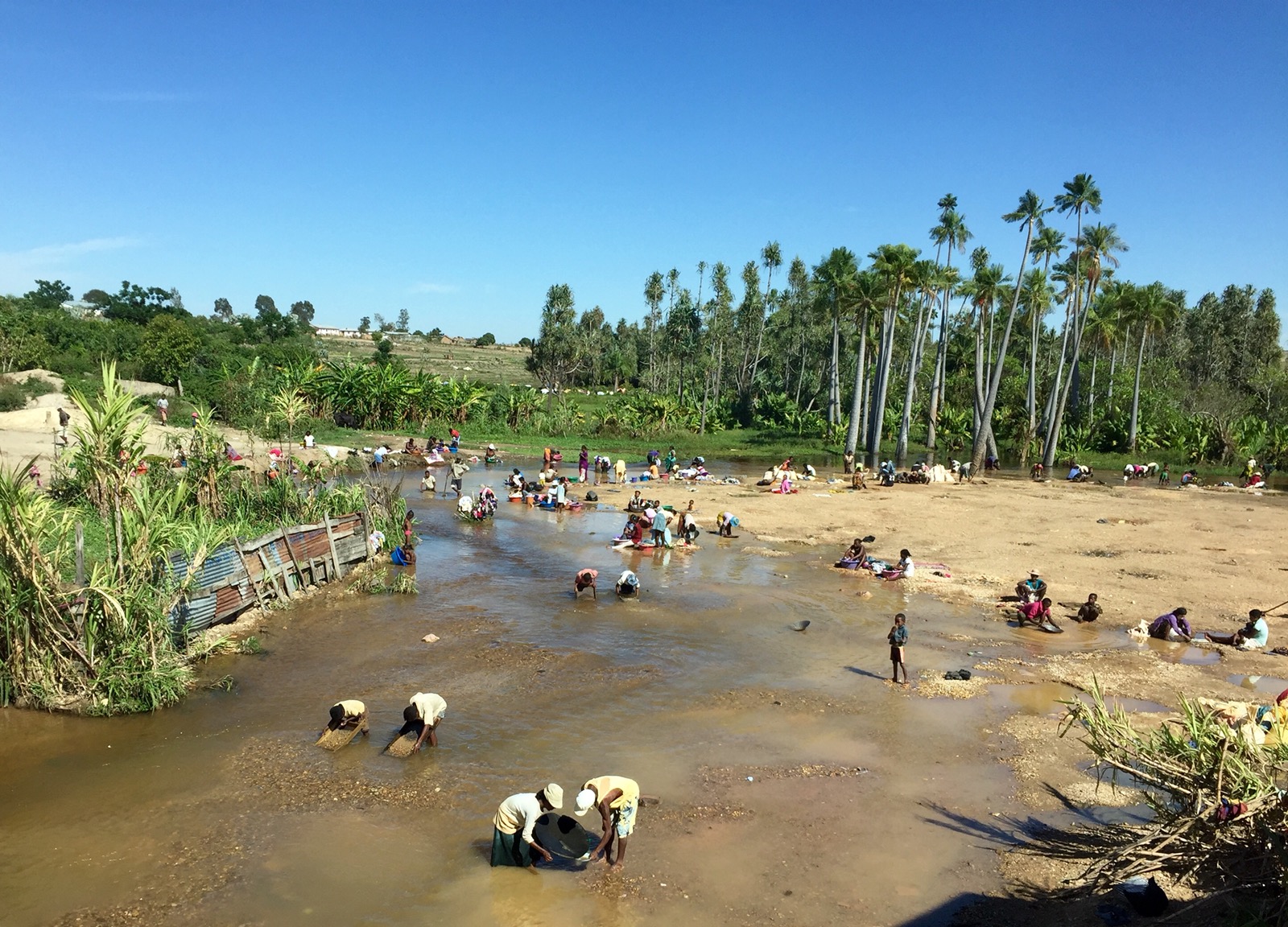 We drove through a town which has sapphire mining. Many Japanese, Chinese and Sri Lankans come here to mine. It’s the only place in the world where pink sapphires can be found. We crossed over a river, which was full of men panning for stones. And women doing clothes washing!