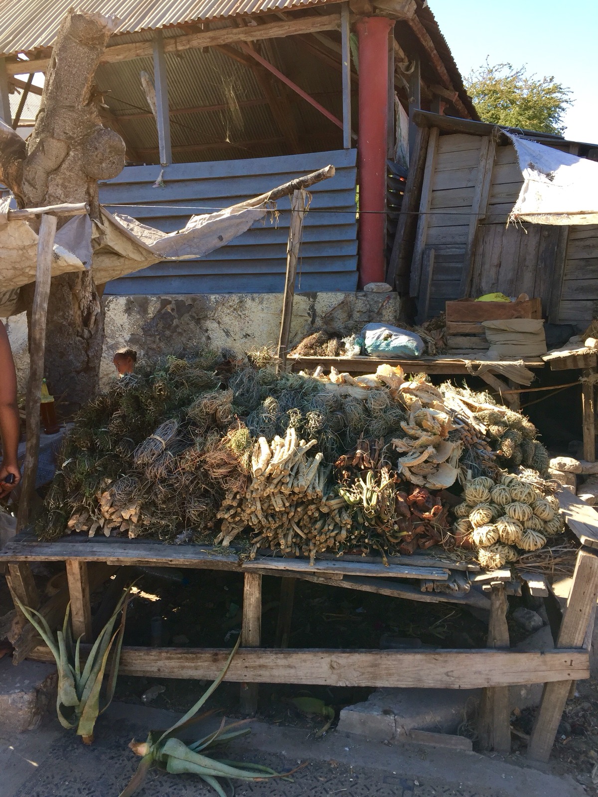 It was a bumpy, unpaved road. Full of dust. But cool scenery – lots of cacti, small aloe, baby baobab and tall trees that look like asparagus!