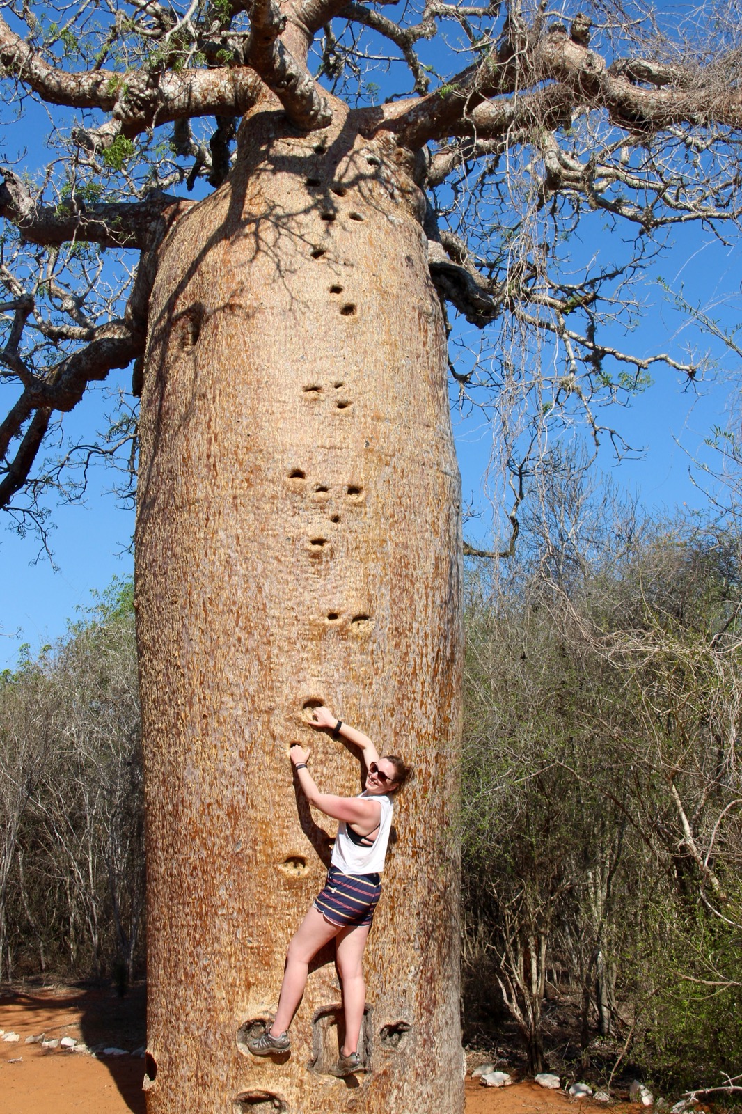 They had some cactus that are poisonous to humans – the sap can make you blind. Of course we saw loads of baobab. But all different shapes. Some were large and fat. Others tall and thinner. Some were leaning. Some had two trunks coming out of one base. And many had holes leading up the sides – people used to climb up to collect the fruit. I had a go. Impossible.