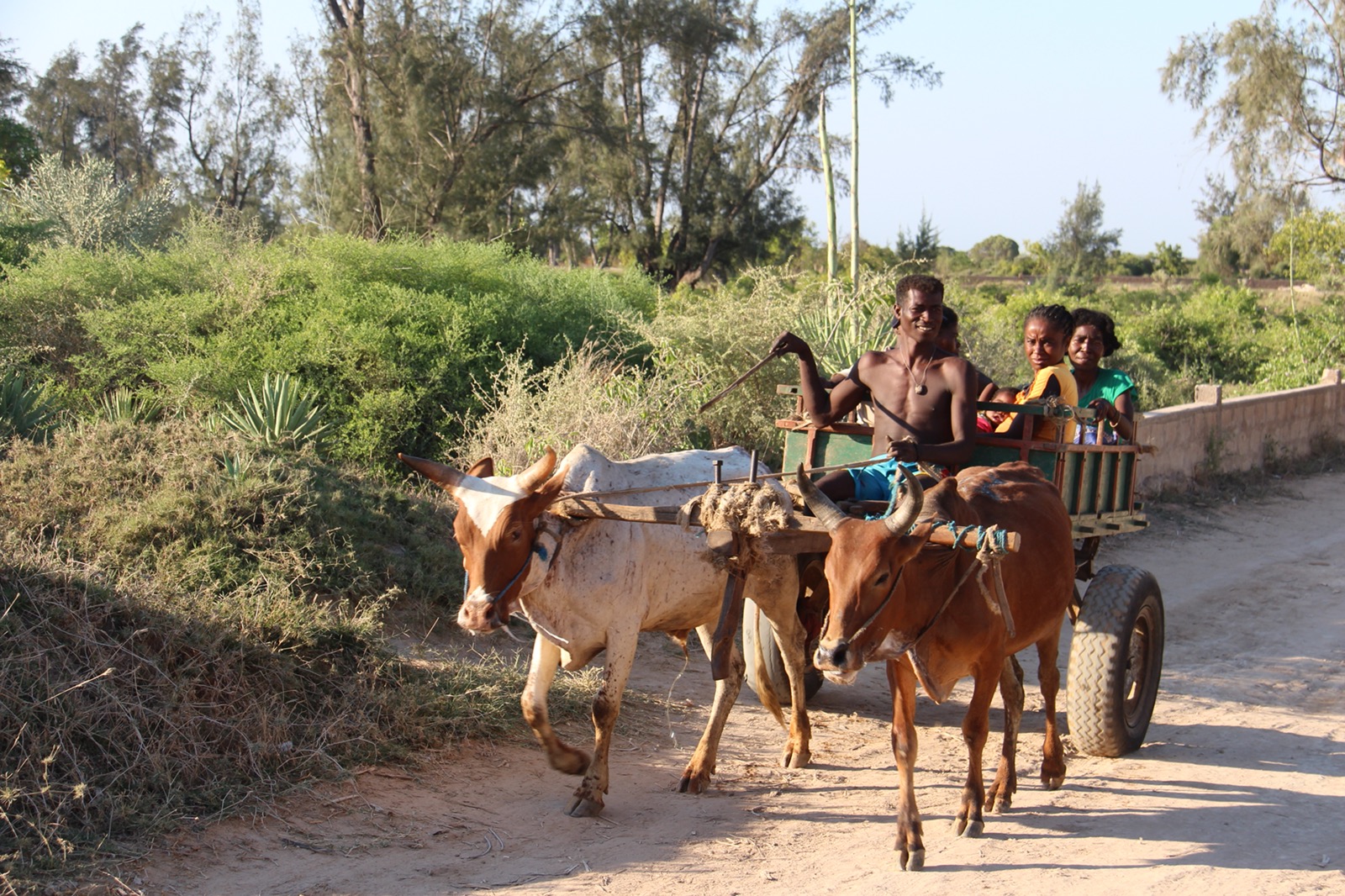 After a couple of hours wandering around all the weird trees, we headed back. This time we did walk. And came across a real zebu cart pulling a family along!