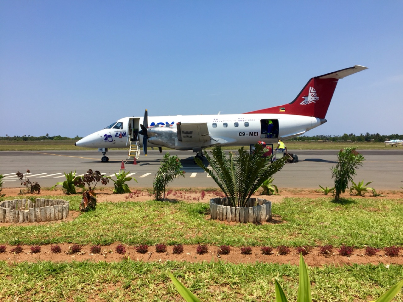 The flight was going to Maputo and that’s as far as the ticket they gave me went. My original ticket was to Johannesburg. But apparently I have to sort that in Maputo. Lucky it’s just a tiny airport and I didn’t have far to walk to the tiny propellor plane. As I was accepted onto the flight so late, I did not have an allocated seat. The woman told me to just find one.