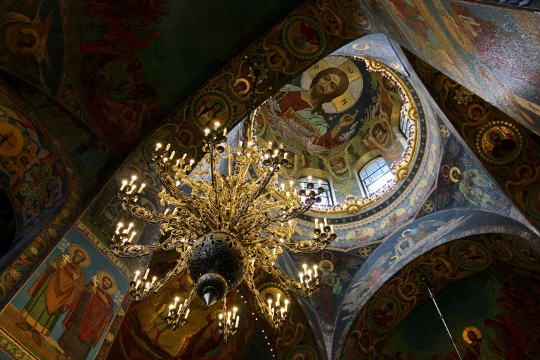 This church has five domes and is the city’s most elaborate church. It is similar to the church in Moscow on red square, with coloured domes, but not quite as pretty. It cost 250 rubles (£3.40) each to go inside. And inside, every single surface was completely covered in coloured mosaics. All showing pictures. 7,000 square meters of mosaics. It took 24 years to build and after years of neglect during the soviet period, another 27 years to restore! It was a completely different design to any church I’ve been to before.