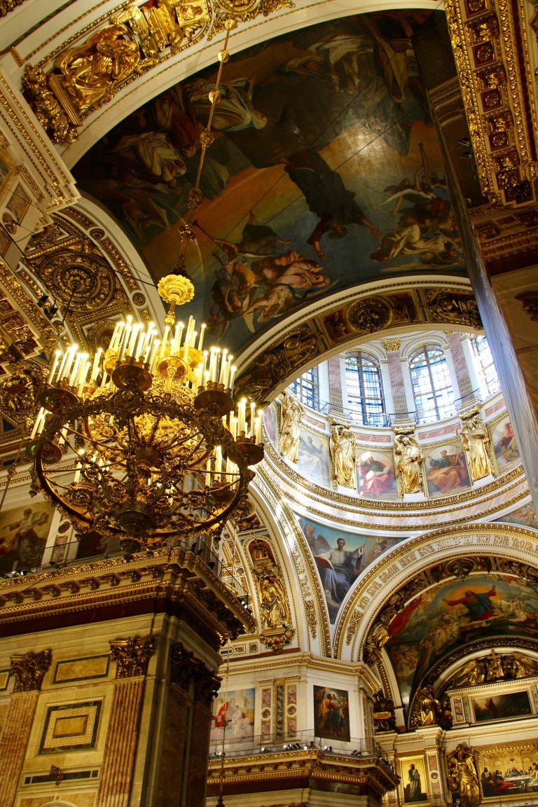The designs for St Issac’s Cathedral began in 1818 and took until 1858 to construct. Over 100kg of gold leaf was used to cover the 22m high dome. Whilst the church is officially a museum, occasionally services are held here on certain religious holidays.it was pretty inside; the standard mosaics, gold and colour.