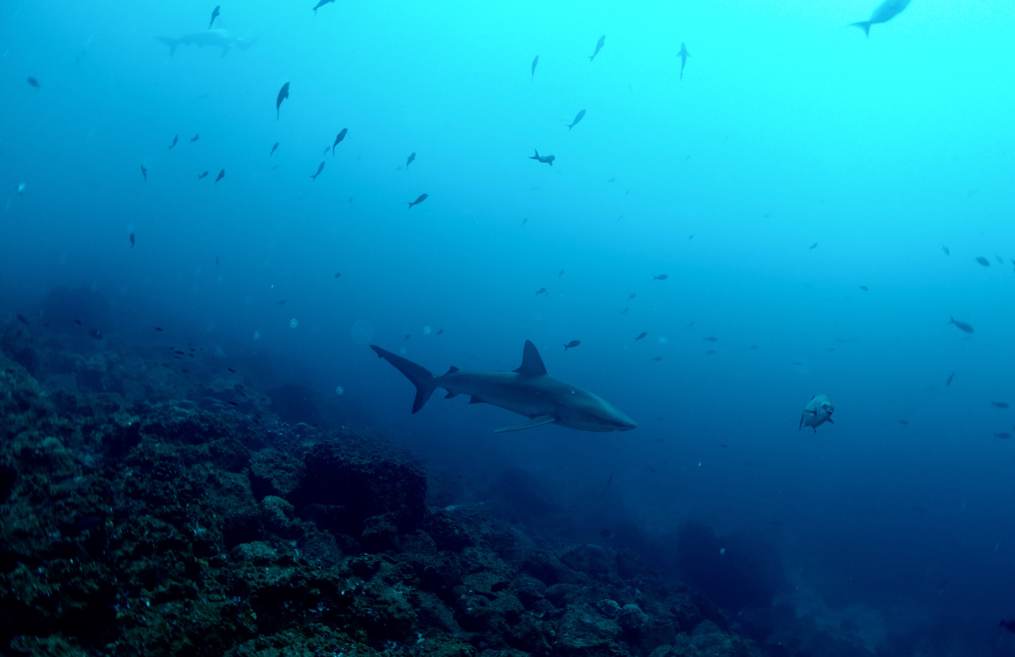 After around half an hour, we let go of the rocks and zoomed along. The current was strong. More sharks. Schools of jacks. Then back to the surface.