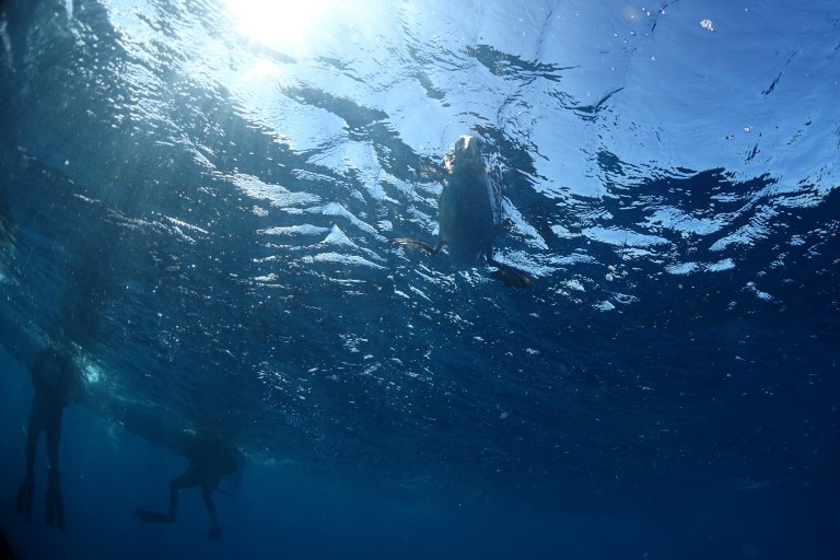 A short while later, it passed by again – in the opposite direction. And this time I caught the attention of the guide. But too late, it had swam away too fast. But it was huge. A massive 12m one.