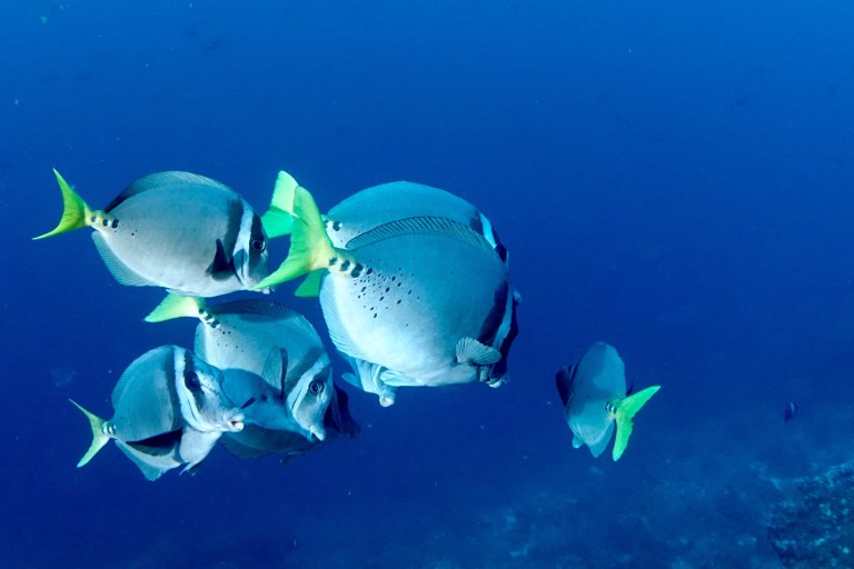We were trying to swim into the school of jacks, but the current was pushing us away from the reef and out into the blue. It was the end of the dive, so we shallowed to begin the safety stop and we were caught in the strangest current.