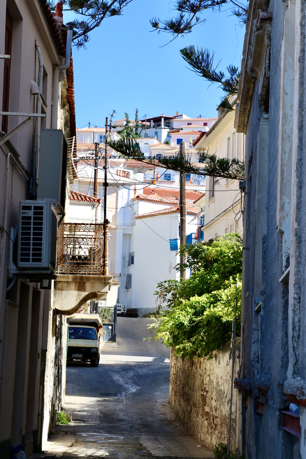 We arrived at the island of Poros, sailing alongside the colourful town.