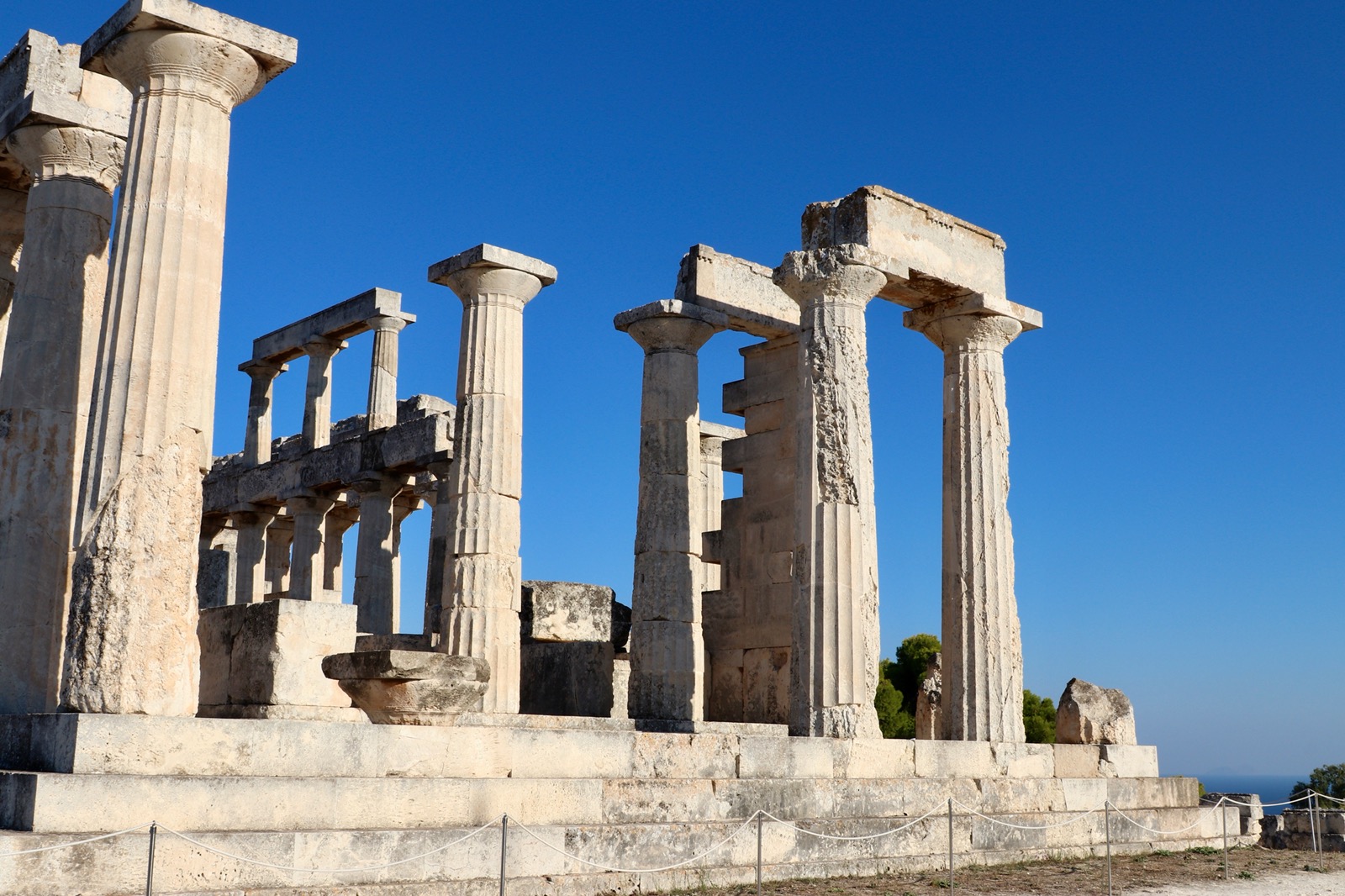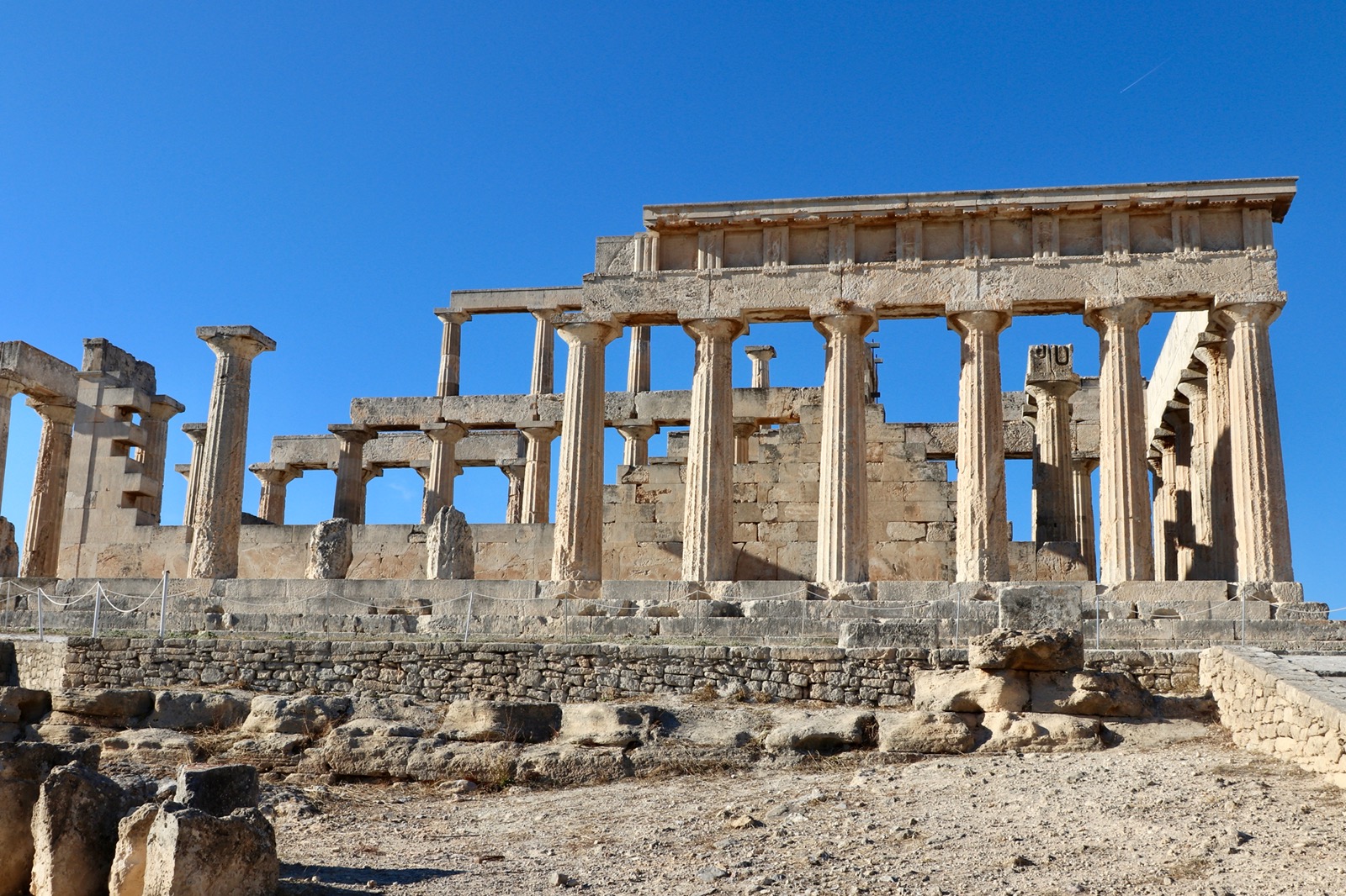Our first stop (and the main reason for taking a bus!) was the temple of Aphaia. Built in 480 BC. Rows of stone columns. And surprisingly well preserved. It looks very similar to the Parthenon in Athens – there are a triangle of three temples which were built at similar times and look very similar in design. The third is on the south coast Greece, south of Athens.