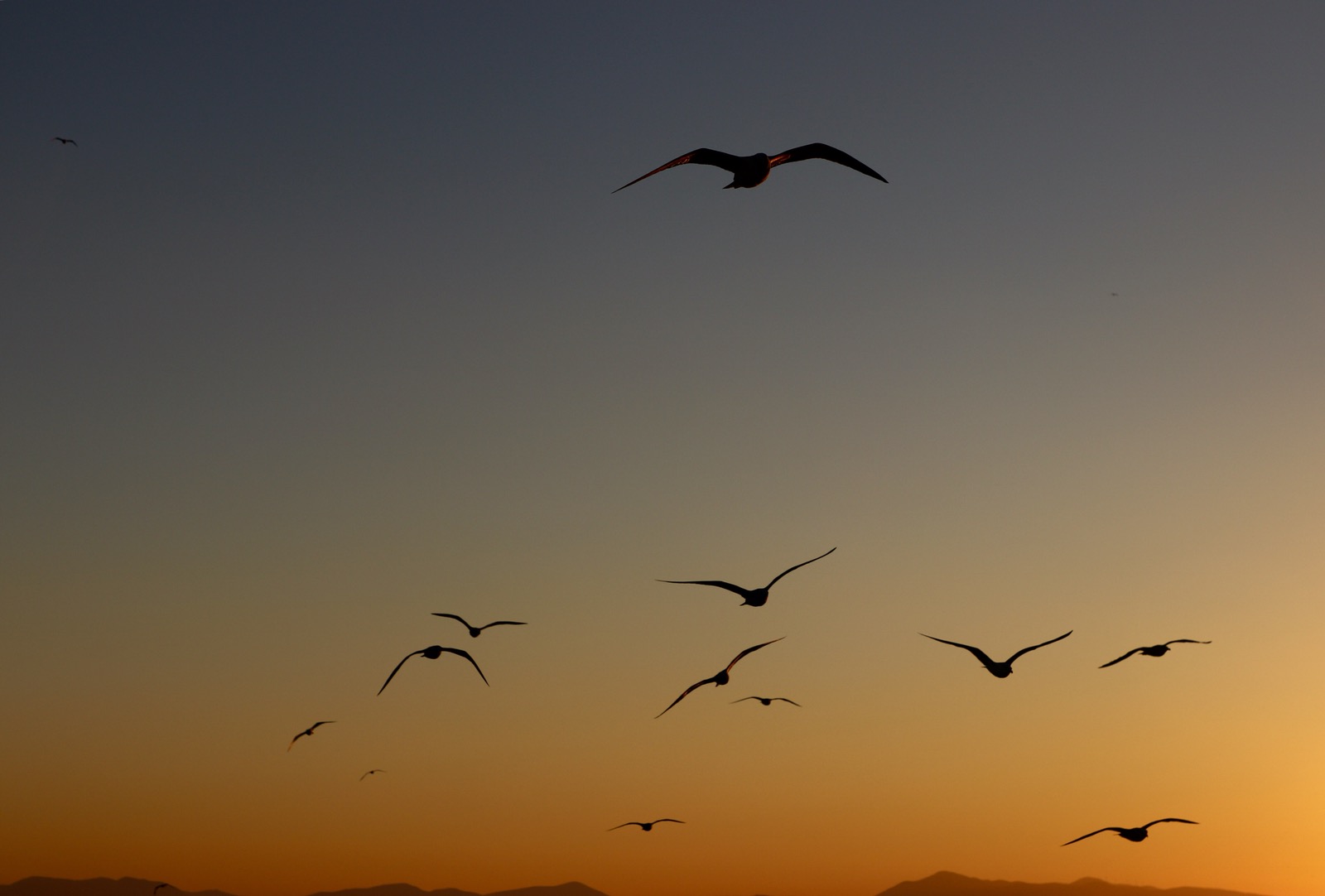 It was getting late. And the sun was setting. We were being followed by a flock of gulls – making for a great photo.