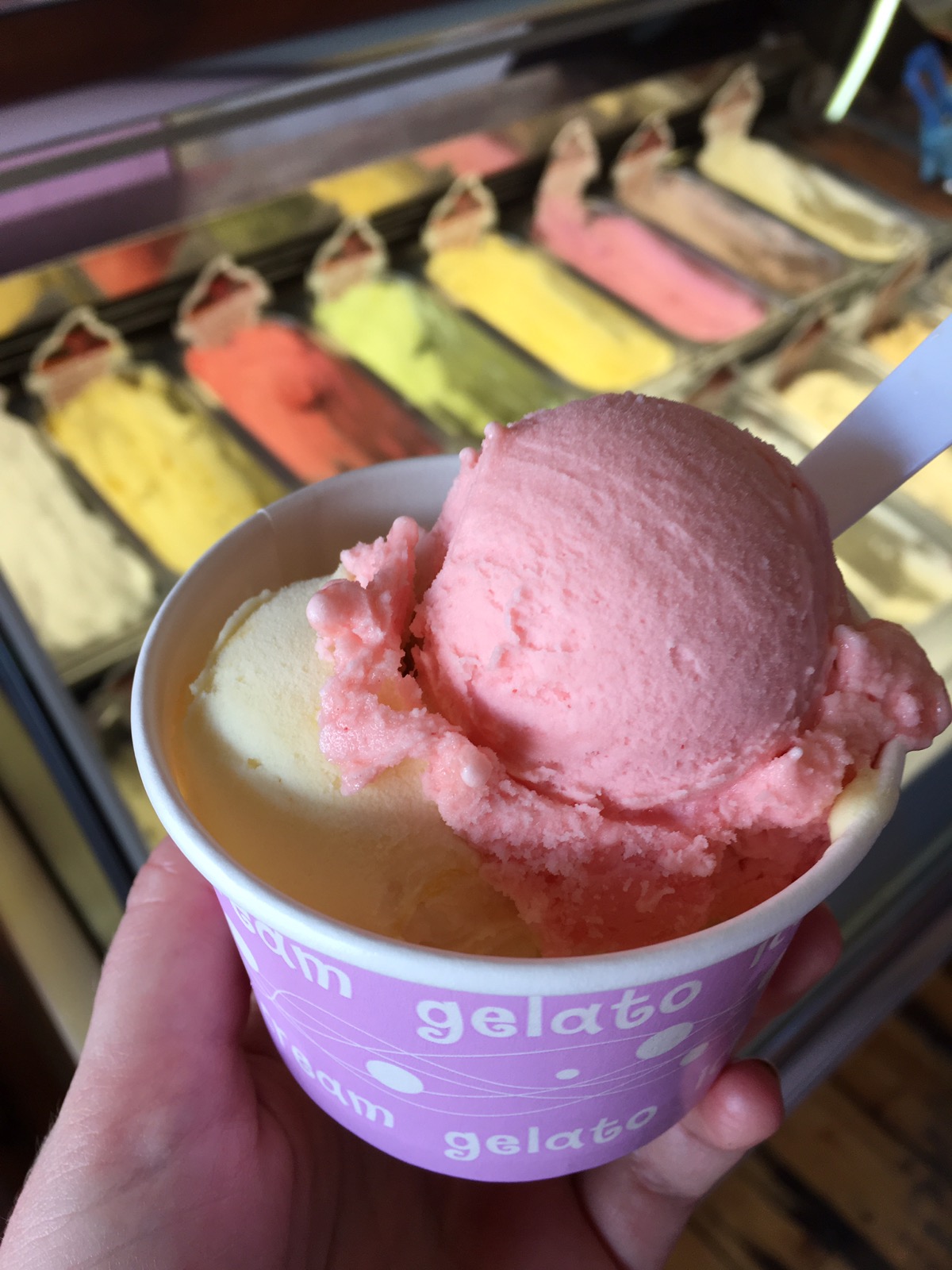 Then for a walk around. It was warmer now. We went down the Main Street – full of different shops. Tourist souvenirs. Then ice cream – and they had vegan ones! I had passion fruit and guava. It was ok. Not Italian gelato. But definitely better than nothing.