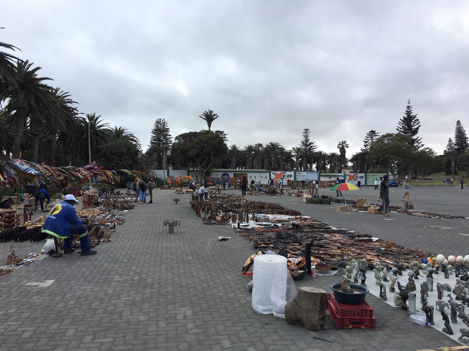 But just behind the ocean, a large car park area full of craft market. All the usual African market stuff – paintings, jewellery and everything in wood: animals, bowls, flat carvings.