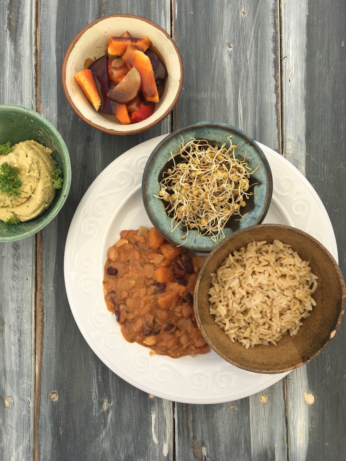 For lunch, I had spotted a vegan cafe yesterday. Incredibly exciting. The menu looked amazing. I chose a bowl with brown rice, beetroot and sweet potato, hummus and spicy beans. But then we waited. And waited. And waited. While eating ekanga seeds. For nearly an hour and a half. It was ridiculous.