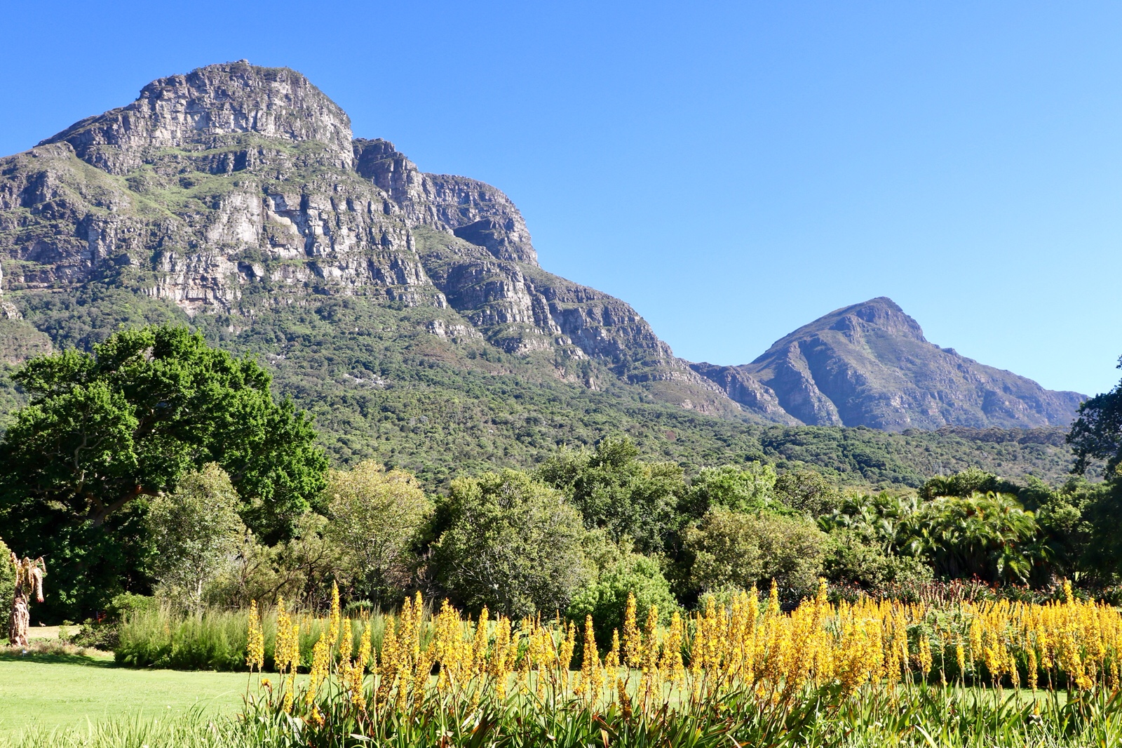It took about 20 minutes to drive around the base of table mountain to the gardens. Going against the morning rush hour into the city.