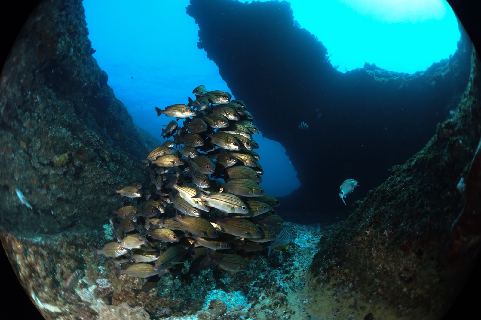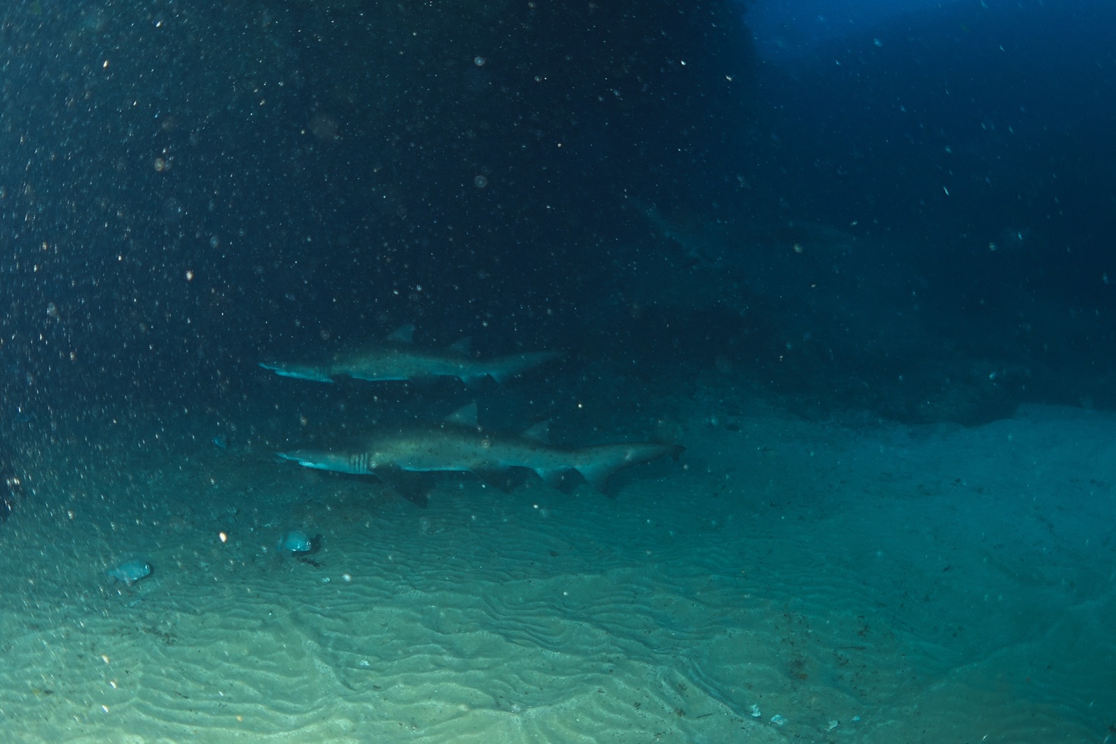 We dropped next to a cave. There were a few small raggie tooth sharks hanging out in here. But they didn’t come too close.