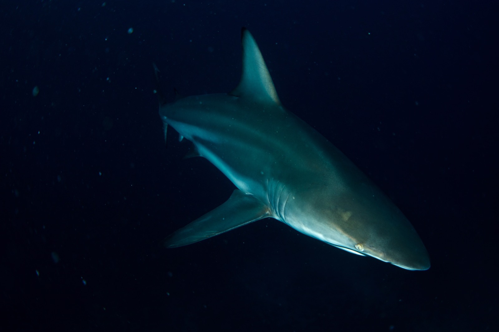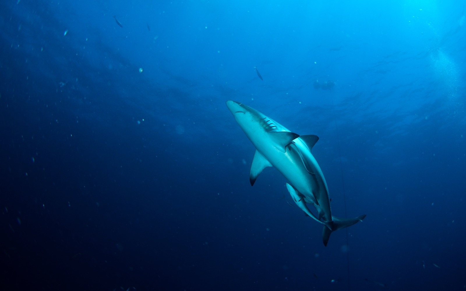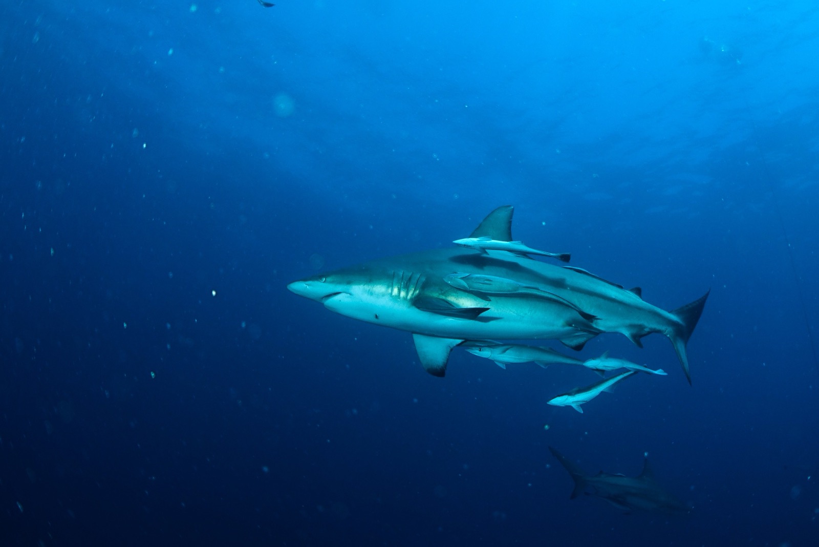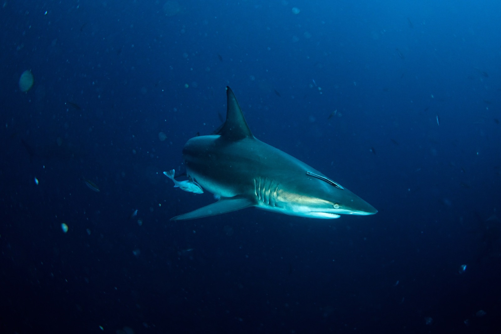 Even when they were setting the bait balls into the water, the oceanic black tips were splashing around on the surface. So many of them.