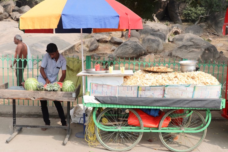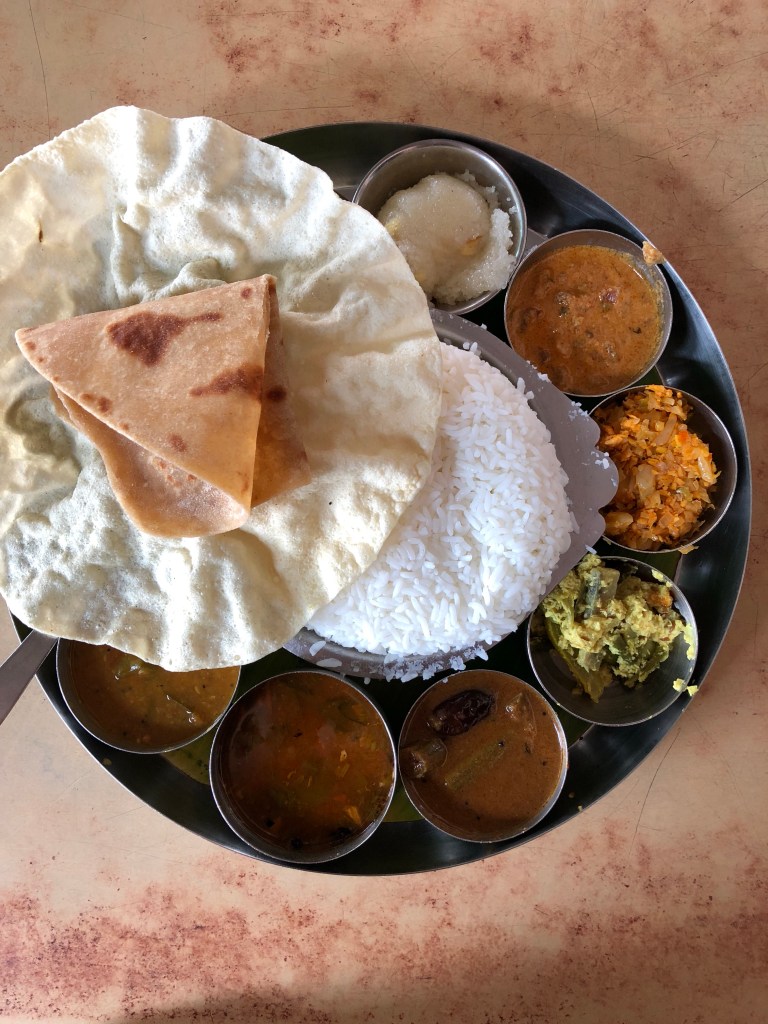 About half way, we stopped for lunch at a vegetarian restaurant at the side of the road. I didn’t know what to have, so went for a Tamil Nadu thali.