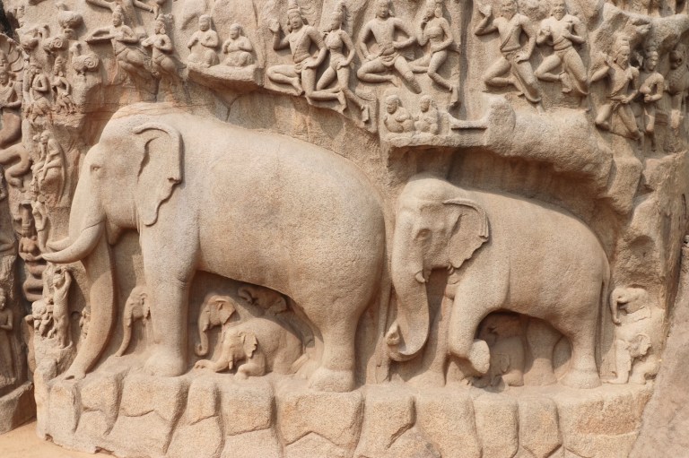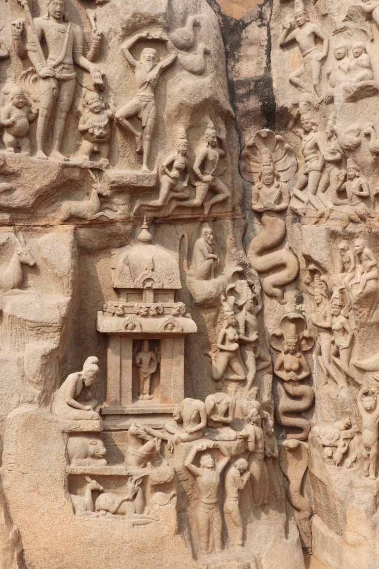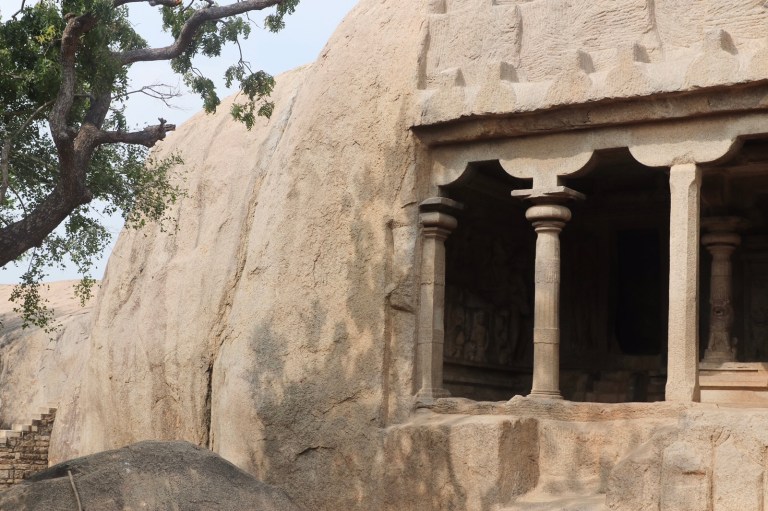 Here was another carved cave – Arjuna’s Penance. This one had elaborate carvings on the rock all around the cave too. And some massive elephants. Really cool. This is apparently one of India’s greatest ancient art works.