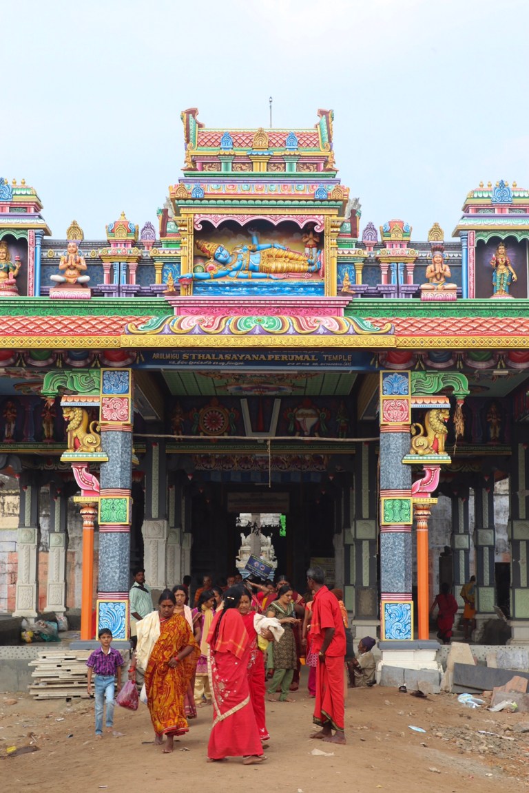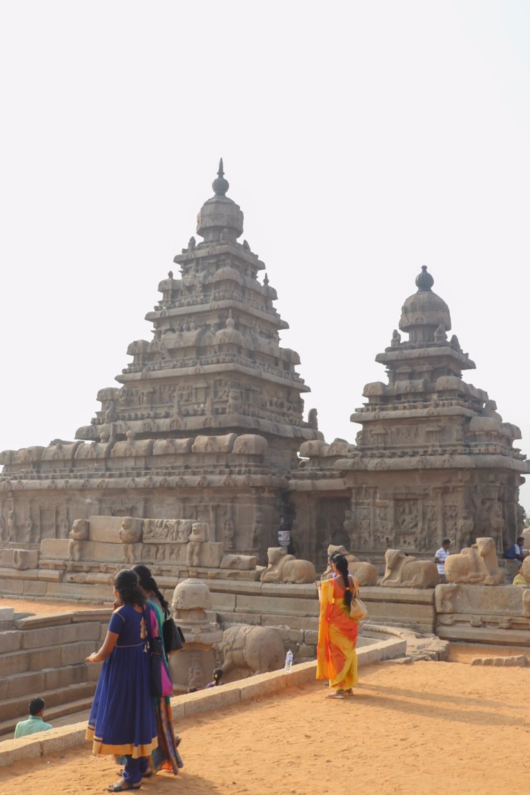 The next stop was the Shore Temple. Even getting near the car park as chaotic. Buses and tuk tuks and cars everywhere. Plus hundreds of people. All dressed in red – red saris and red clothes.