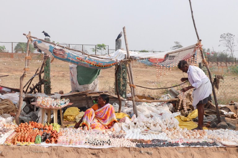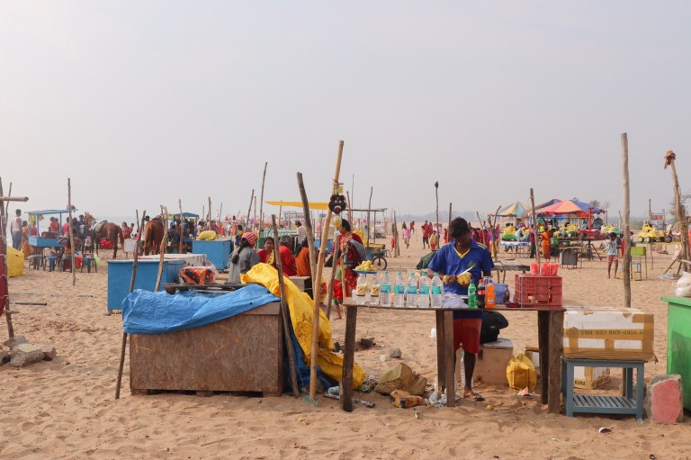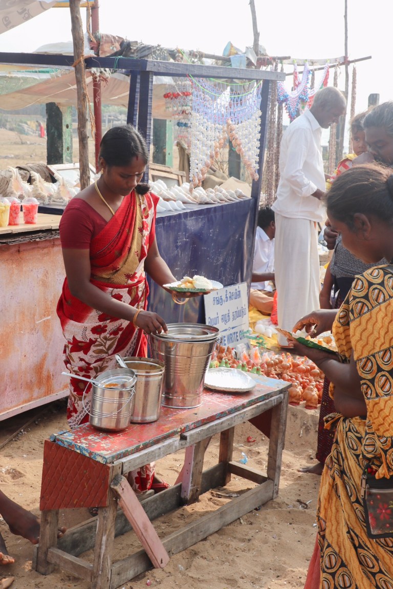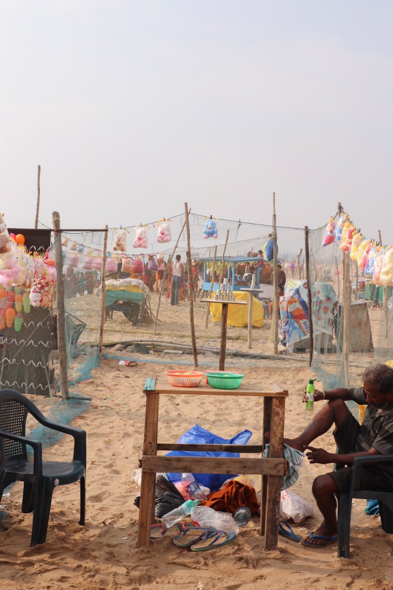 Next to the temple area was the pathway leading down to the beach. This was like any other pathway leading to an attraction – entirely full of souvenir shops. But rather than aimed at foreign tourists, these were aimed at local tourists – everything in plastic tat, tea mugs, bracelets, shoes, stone carvings, pestle and mortars (!) and mostly children’s toys.