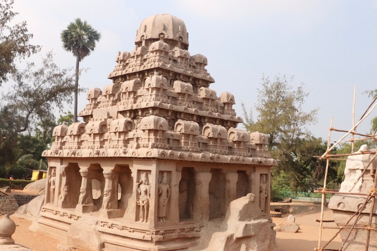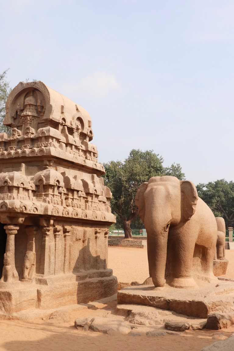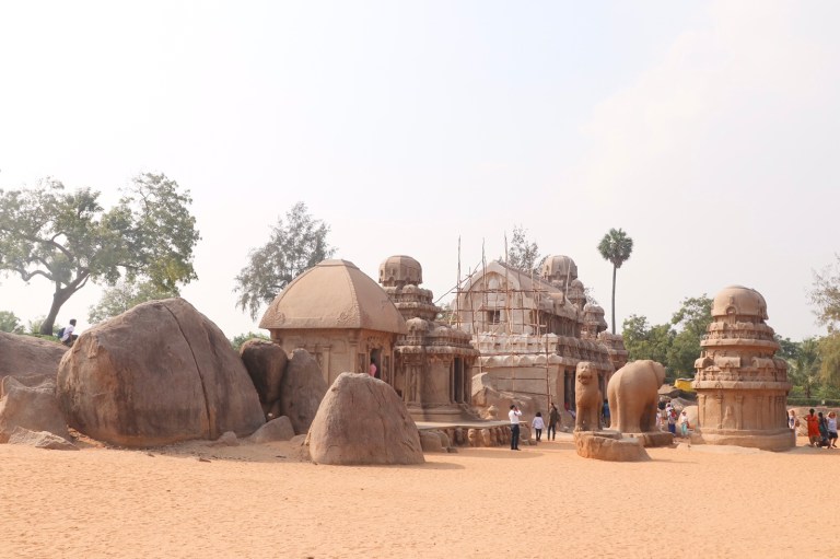After we managed to make our way through the standstill traffic, we were at the Pancha Rathas. This is a small collection of stone structures – a tiger, an elephant, a bull and a few temple like buildings. All surrounded by sand. They were apparently carved from singular, large rocks. Each one is dedicated to a Hindu god.