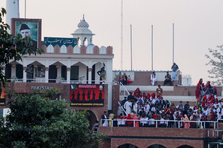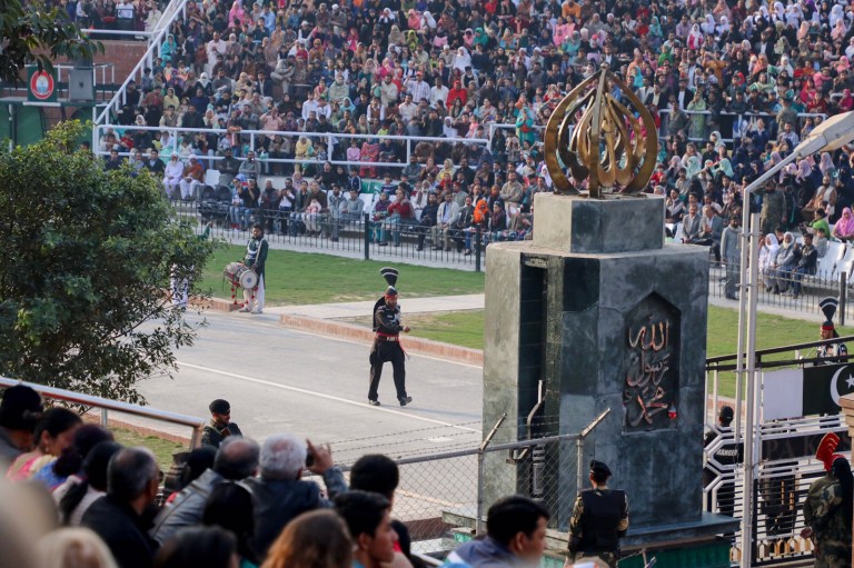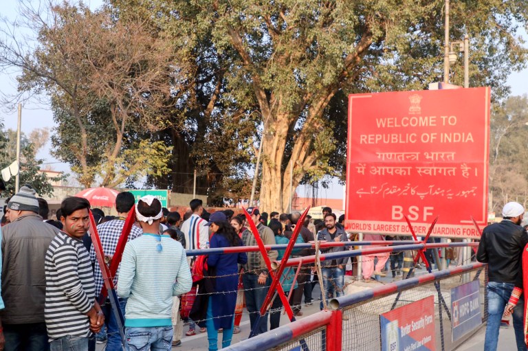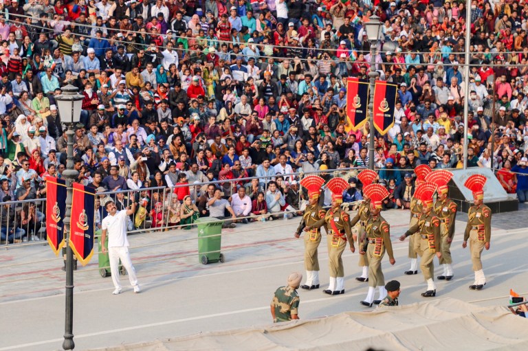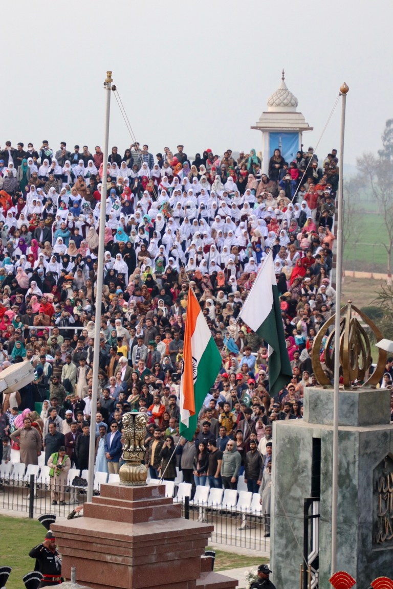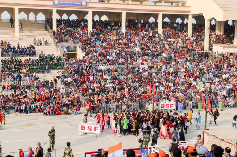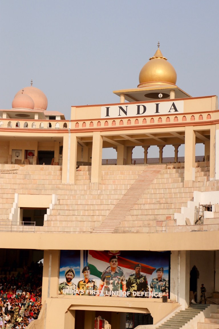 All the foreign people are sat together. Quite high up. I wasn’t expecting it to be so busy. There were thousands of people. And that was just the Indian side.