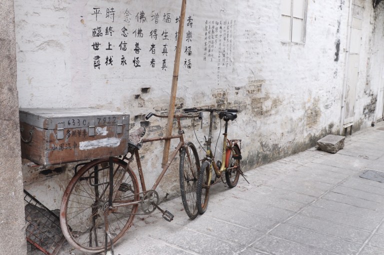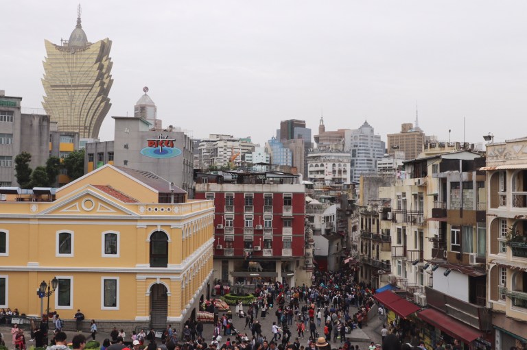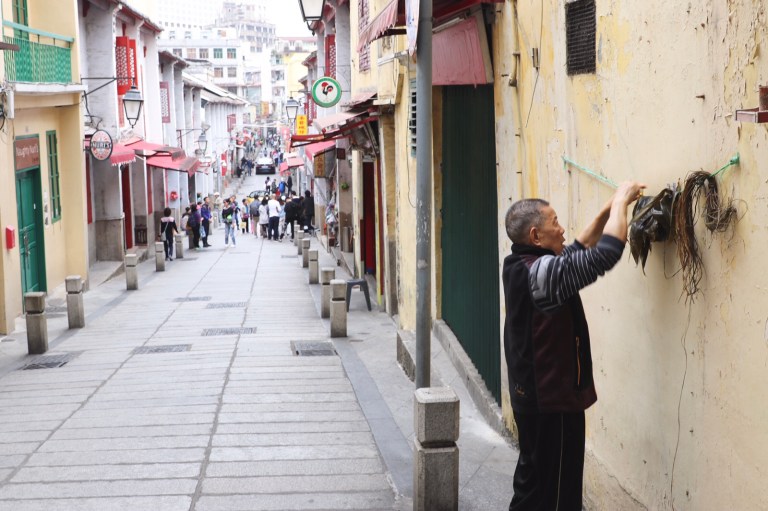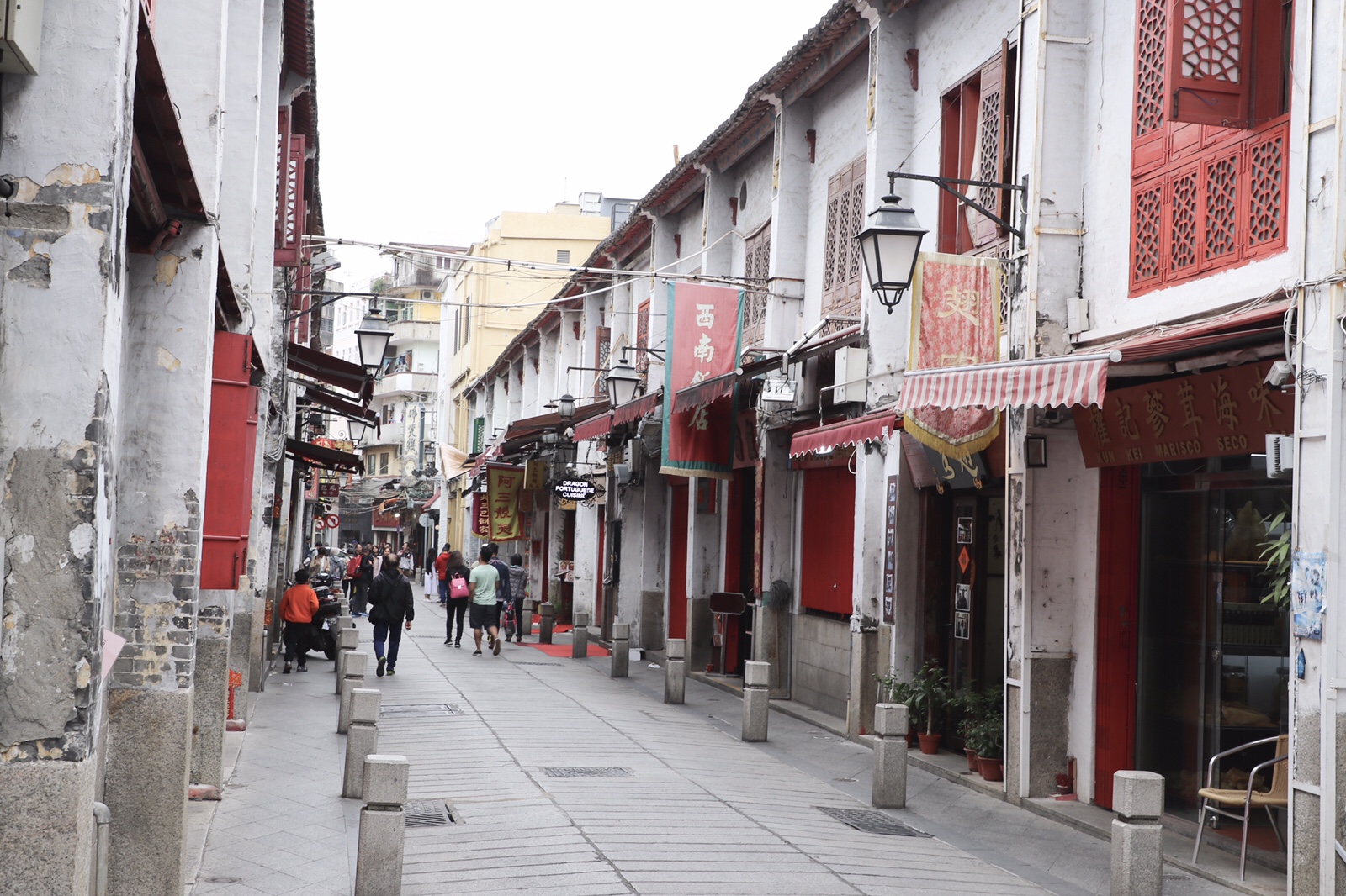 I wandered around the streets (between the crowds of people) and ended up passing through the UNESCO preserved streets – full of Portuguese architecture. Colourful tiles. Arches along corridors. And several church like buildings. Very different from ‘normal’ China.