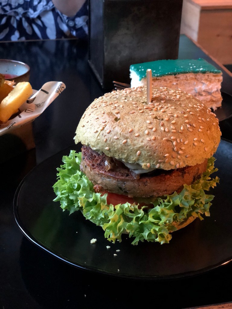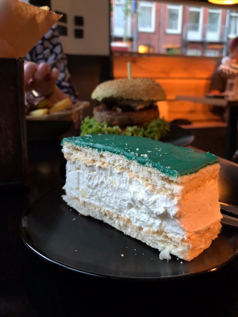 It was now 8pm and very much dinner time. There was a vegan seaweed (but marketed as ‘weed’) based-food cafe nearby. The food was good. But we rather over-ordered! For dessert we had a tompousse – which is apparently a traditional Dutch dessert – but just like a cream slice.